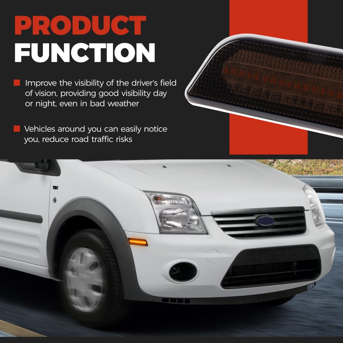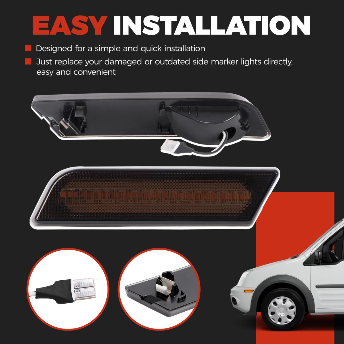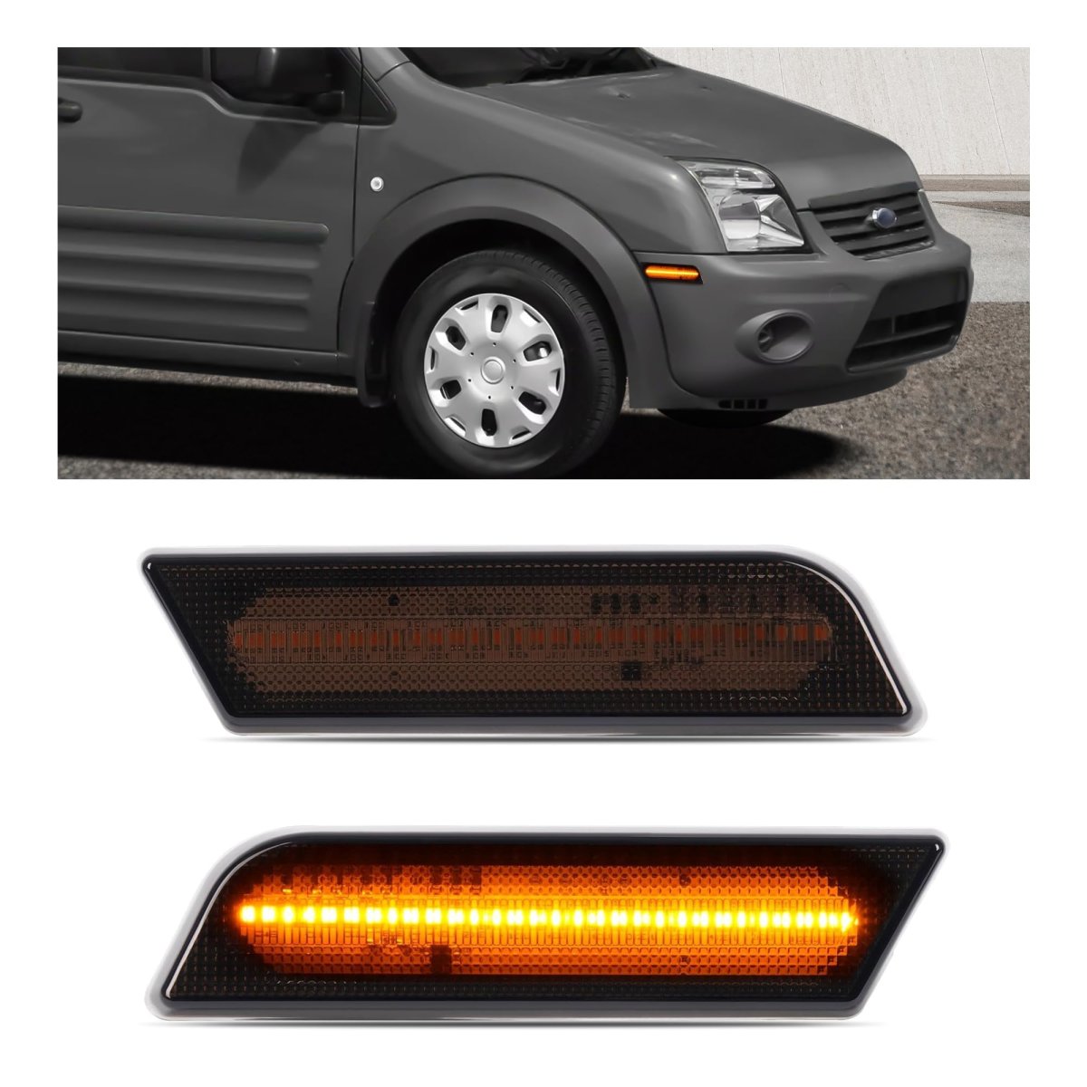 - Hecasa Front Led Side Marker Light For 2010-2013d Transit Connect Replacement For 9t1z15a201b 9t1z15a201c Smoke Lens Amber 2