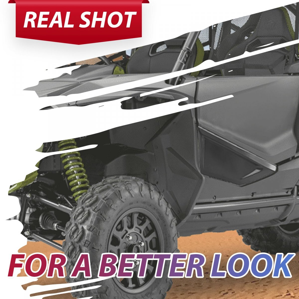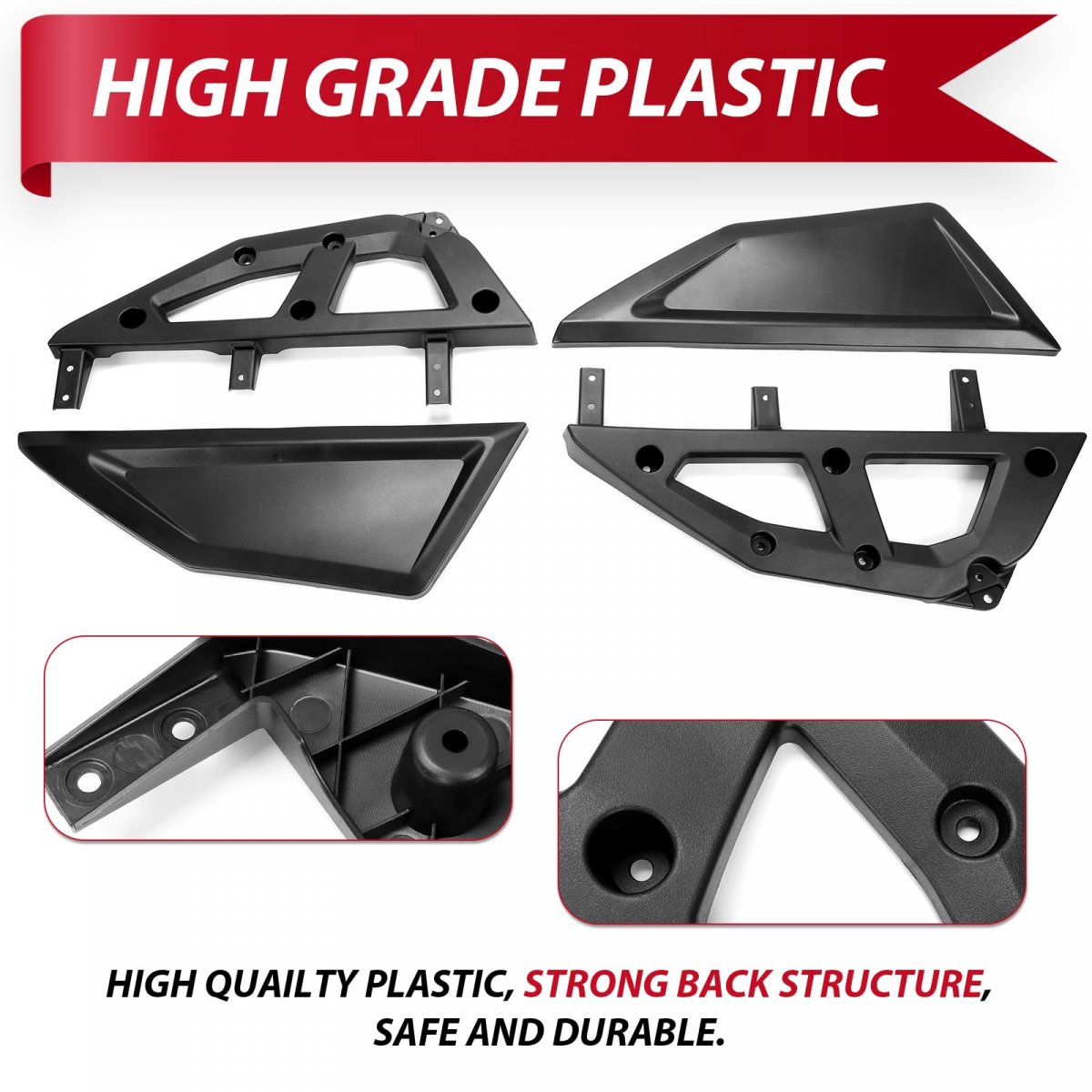 Fitment: Compatible with 2019-2022 Honda Talon 1000X; Compatible with 2019-2022 Honda Talon 1000R; Compatible with 2020-2022 Honda Talon 1000X-4 (Front Doors Only).. Durable Material: The lower door panel is made of high-quality plastic, which is sturdy and durable, more impact-resistant, not easily damaged, and has excellent performance. Anti-UV, not easy to fade, can be used outdoors for a long time. Black appearance, calm and elegant, thus giving your vehicle a more fashionable appearance.. Comprehensive Protection: The lower door panel can prevent stones, mud, sewage or other garbage from entering the cab, keeping the interior clean and tidy. It can also avoid distracting the driver's attention and improve driving safety.. Package Included: 1 pair of door panels and plastic frames and all hardware as shown in the pictures. No instructions are provided.. Stable Installation: Easy to install, directly fixed with bolts, no modification required. The black rubber provided can make the installation stronger, better sealing, and reduce the noise when closing the door and driving..Other fine products