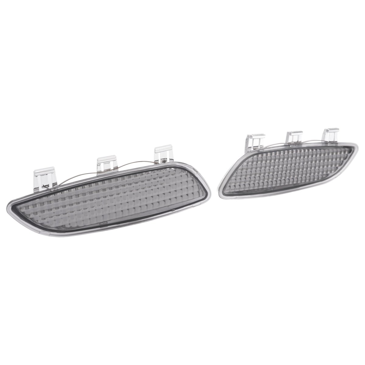 Feature: Material: Plastic. Color: Smoke lens. The material is durable and sturdy, make it can withstand external impacts while protecting the integrity of the interior of the fixture. Extend the use time and improve your driving experience. Function: The side marker lights improve the visibility of the driver's field of vision, providing good visibility day or night, even in bad weather, help surrounding drivers notice your vehicle and respond quickly, reduce the incidence of traffic accidents. Designed for a direct replacement. Easy and convenient, just replace your damaged one, can be easily installed in a short time, no need to ask for assistance. Package: You will receive 2 pcs smoke lens side marker lights(driver+passenger side) w/o bulbs. Mounting accessories and instructions are not included.Other fine products