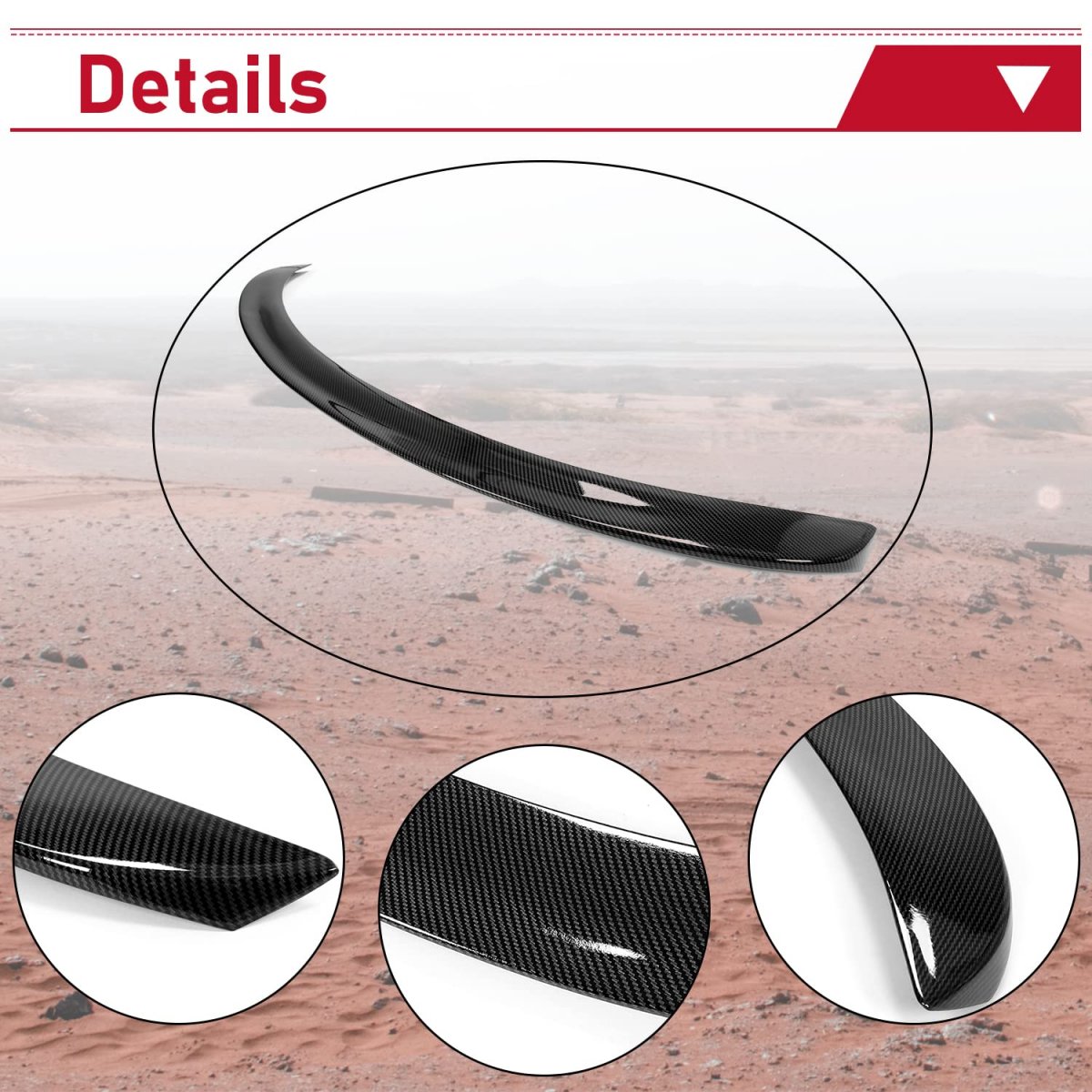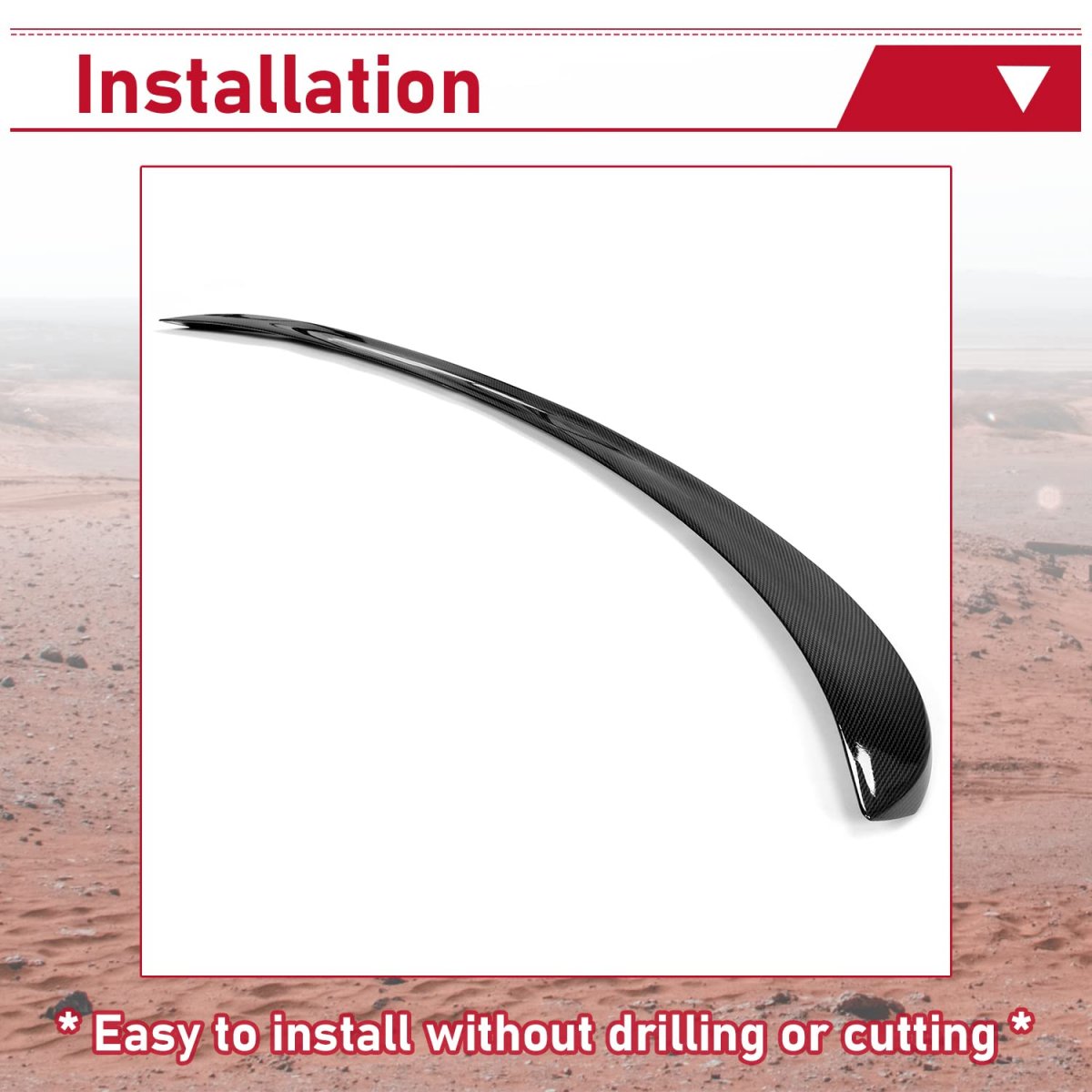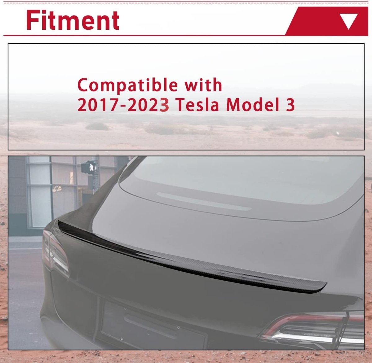 Fitment: Rear Spoiler Trunk Wing Compatible with 2017-2023 Tesla Model 3. This Trunk Wing greatly matches the Model 3.. : Made of durable ABS Plastic, which is Impact-resistant, robust, and resistant to breakage. It also adds fashion and beauty to your vehicle.. Function: The rear spoiler can be extended far enough to reduce the resistance of the wind to the car when driving at high speed and increase the stability of the car, which makes the driver feel more comfortable at high speeds.. Package Including: 1 Carbon Fiber Rear Spoiler Trunk Wing. Mounting Accessories is included. The installation instruction is NOT included.. Easy installation: Installation method: 3M tape or adhesive promoter. Just stick the rear spoiler to your Model 3 with sturdy 3M tape or adhesive promoter. No any drilling or modifications is required..Other fine products