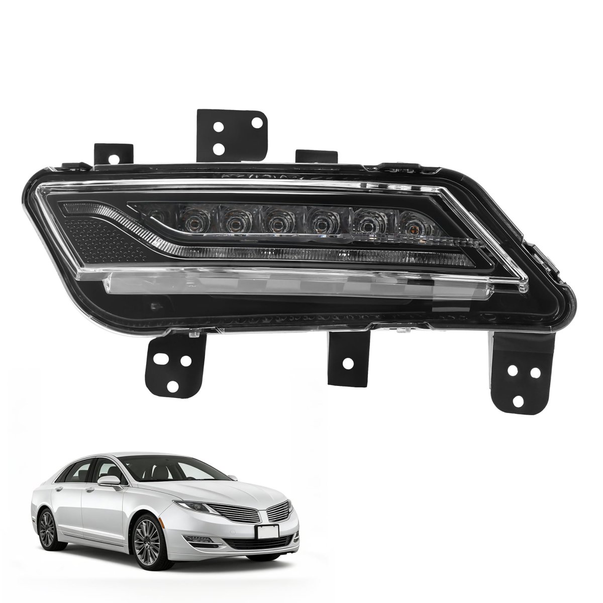 Fitment: The fog light is Compatible with 2013-2016 LincoIn MKZ with Signature Lighting; Replacement for DP5Z15A201B FO2593242. Condition : Material: Plastic(PC). Color: Clear lens. Position: Right side. The fog light is made of high-grade plastic PC, which is durable. They can be used normally in different weather and road conditions, effectively extending the working time of the fog light. Installation: Designed for a simple and quick installation. Just replace your damaged light with our premium fog light, easy and quick, then you will start a great driving experience. Function: This fog light is engineered to enhance visibility during foggy conditions, effectively illuminating the road and nearby signs. The light design fog light help enhance the driver's sight, thereby reducing the likelihood of accidents in adverse weather. Package Included: 1 right passenger clear lens fog light. Other mounting accessories and installation instructions are not included.