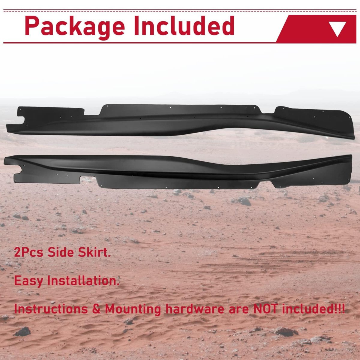 Fitment: These side skirt rocker panels are compatible with 2014-2019 C7 Corvette Base Models Only.. Feature: Color: Matte Black; Made of superior plastic for better performance and durability.. Function: The side skirts will prevent your car from scratching and dramatically improve the sporty appearance for your car.. Package include 2Pcs Side Skirt. Instructions & Mounting hardware are NOT included!!!. Easy installation and direct replacement. Easy to install without any special tools.You just use screws to install this rocker panels..Other fine products