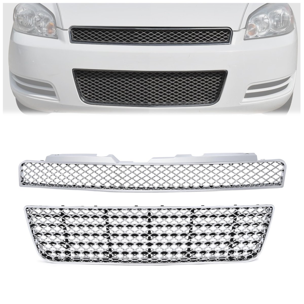 - Hecasa Upper Lower Grille For 2006-2013 Chevy Chevrolet Impala 2014-2016 Limited Front Bumper Mesh Hood Chrome Grill