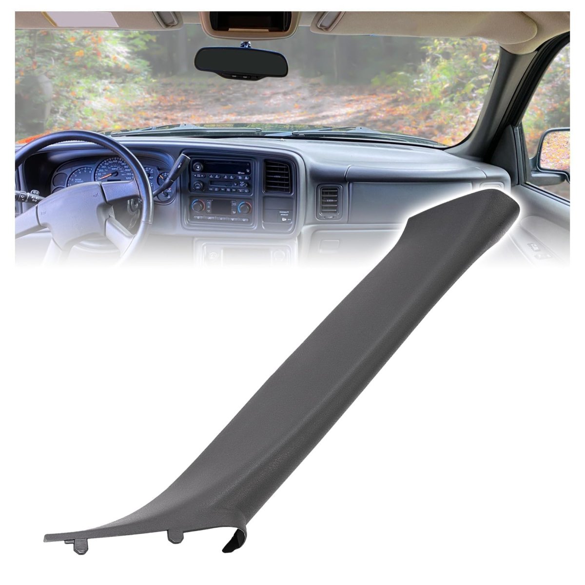 Fitment: Compatible with 1999-2007 Chevy Chevrolet Silverado Suburban Avalanche Tahoe Selected Models; Compatible with 1999-2007 GMC Sierra Yukon Selected Models; Compatible with 2002-2006 Cadillac Escalade. Replacement for 15262946, 15048742, 15073360, 15130700. Note: This product is only suitable for the inner column strip without speakers. Protective function: The Inner Pillar Molding can effectively protect the pillar surface and avoid scratching, collision or wear caused by daily use. Visual unity: The Inner Pillar Molding can be coordinated with the overall design style of the vehicle, creating a harmonious internal atmosphere. Package: 1 X Passenger Side Inner Pillar Molding (Dark Gray). Including installation accessories but not instructions. Installation: Direct Replacement. No additional modification is required.
