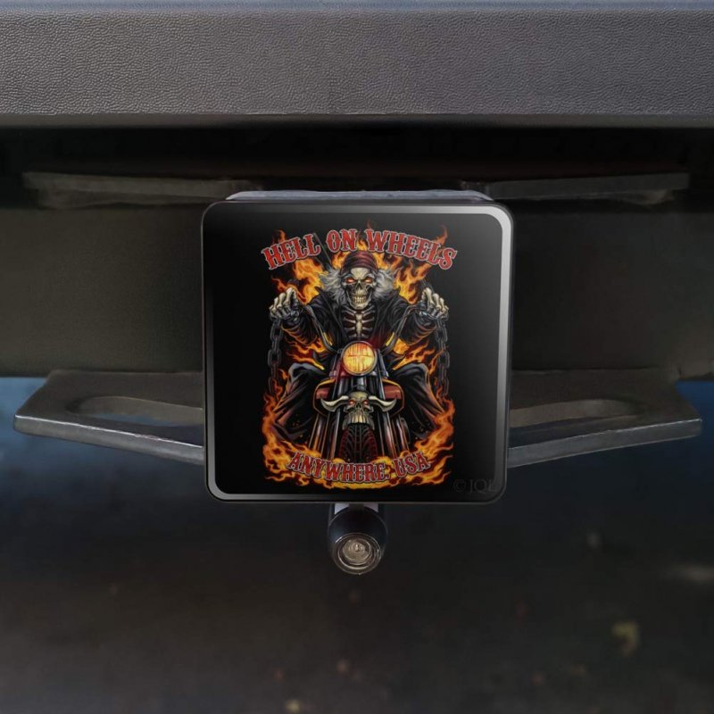 - Hell On Wheels Motorcycle Skeleton Tow Trailer Hitch Cover Plug Insert
