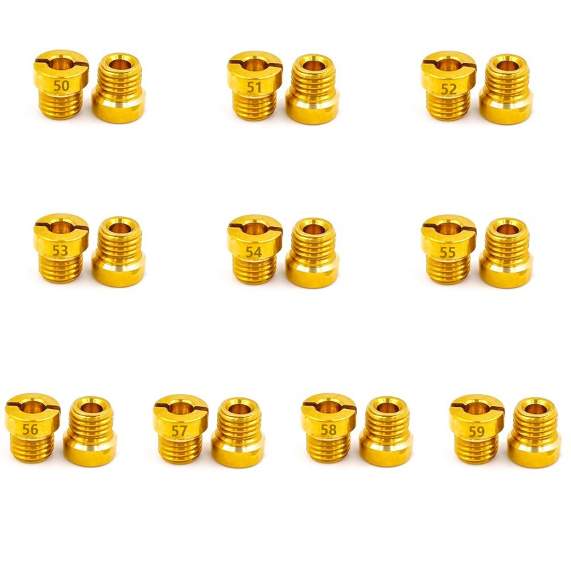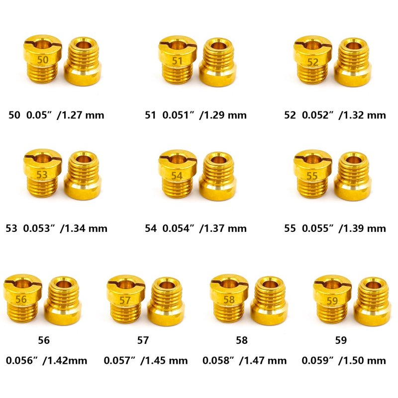 This is a standard Holley Carburetor main jet kit, with thread sizes of 1/4 "-32 and jet hole sizes of 50,51,52,53,54,55,56,57,58,59.. The quantity for each size is 2 pieces. You can get a total of 20 pieces.Made of brass and processed by CNC centers, the cumulative sales have exceeded tens of thousands of sets, and the product quality is trustworthy!. 1/4"-32 UNF Unified Fine Thread.Other fine products