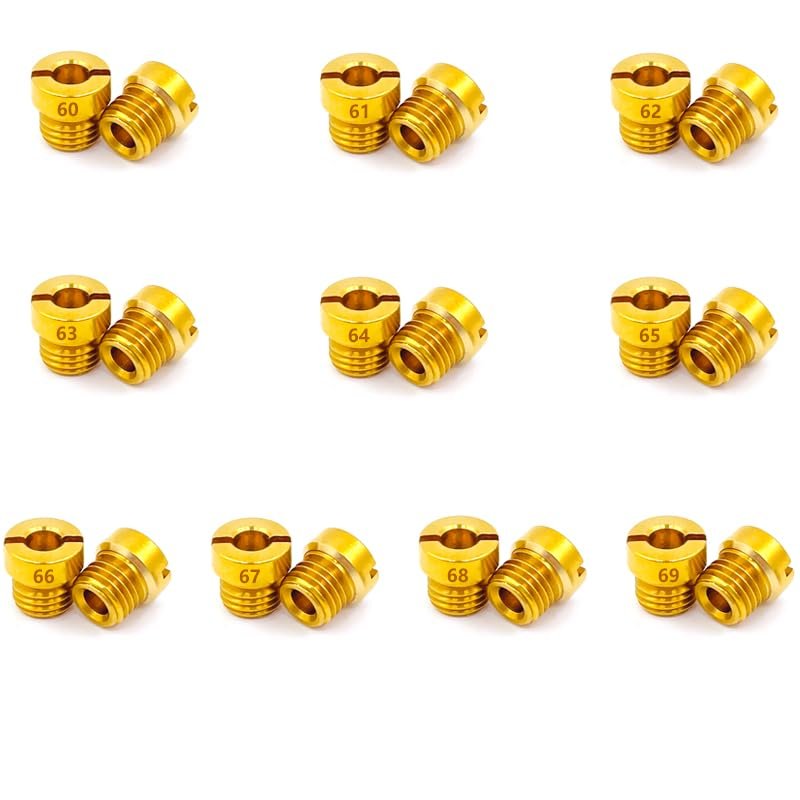 This is a standard Holley Carburetor main jet kit, with thread sizes of 1/4 "-32 and jet hole sizes of 60,61,62,63,64,65,66,67,68,69.. The quantity for each size is 2 pieces. You can get a total of 20 pieces.Made of brass and processed by CNC centers, the cumulative sales have exceeded tens of thousands of sets, and the product quality is trustworthy!. 1/4"-32 UNF Unified Fine Thread.Other fine products