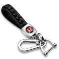 - Honda Logo In Black Braided Rope Style Genuine Leather Chrome Hook Key Chain