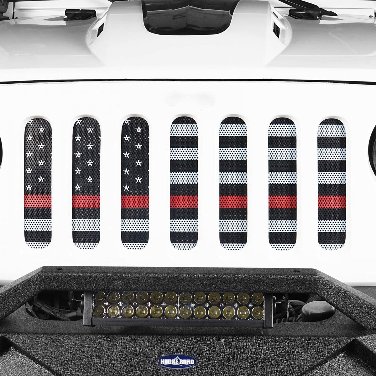 - Hooke Road Wrangler Flag Grill Insert Jk Mesh Grille Deflector Guard For Jeep 2007-2018 Thin Red