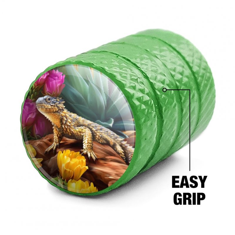 - Horned Lizard And Flowers Valve Stem Caps For Tire Rim Wheel Aluminum Green