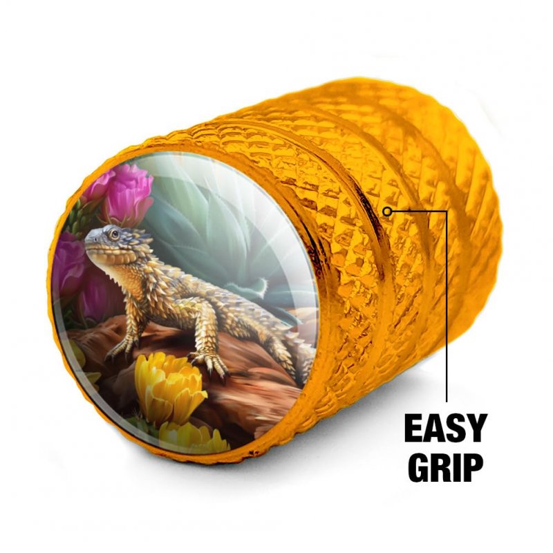 - Horned Lizard And Flowers Valve Stem Caps For Tire Rim Wheel Aluminum Yellow