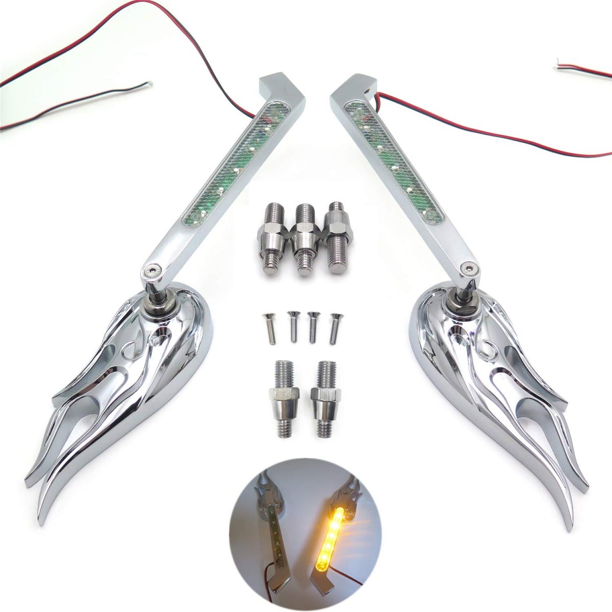 - Httmt 202 Ttt002- Custom Chrome Flame Shape Led Turn Signal Integrate Mirrors For All Cruiser Bikes Models Royal Star