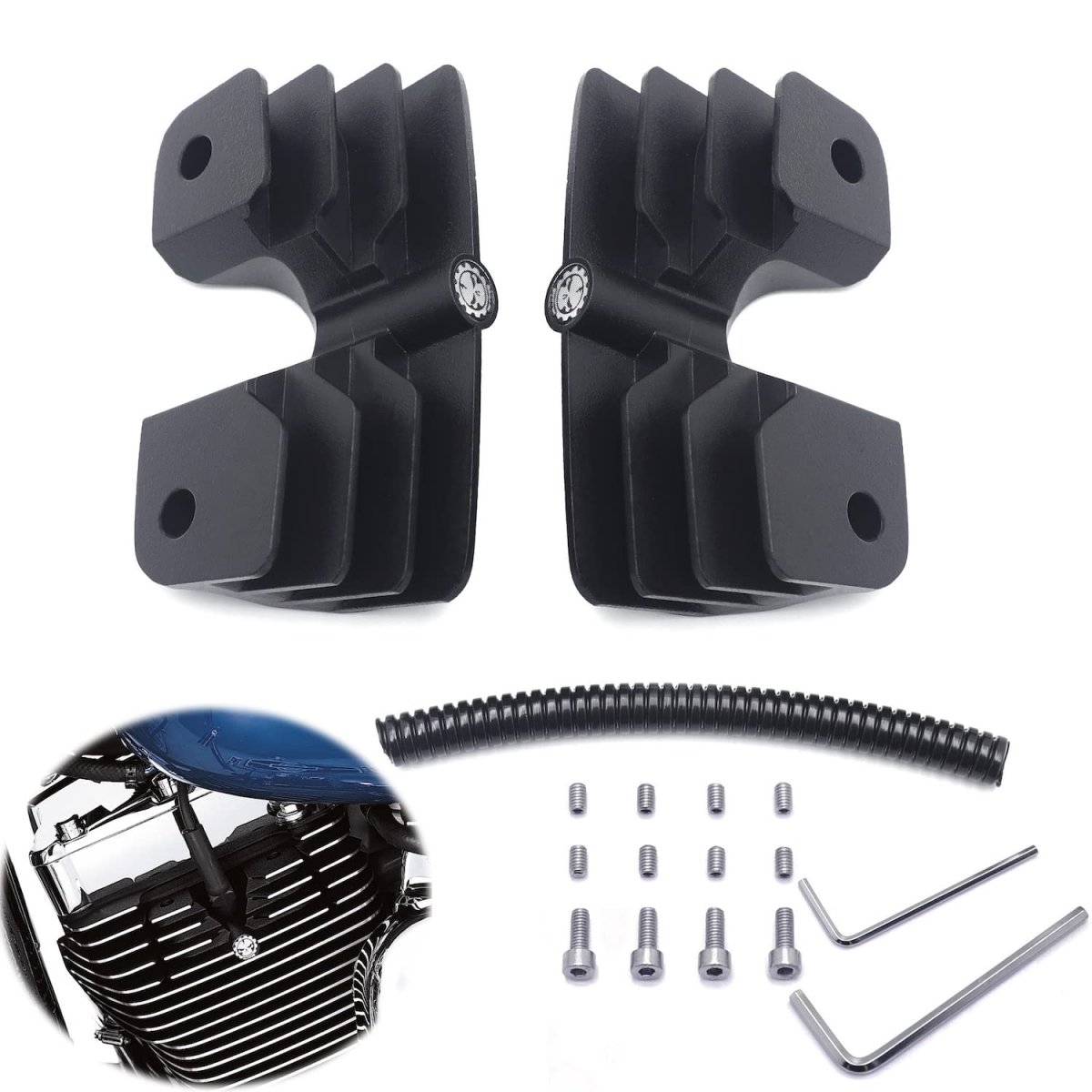 - Httmt- Black Headbolt Bridge Spark Plug Cover Compatible With 99- 17 Twin Cam Touring Softail Dyna P N Mt454-004-mbk