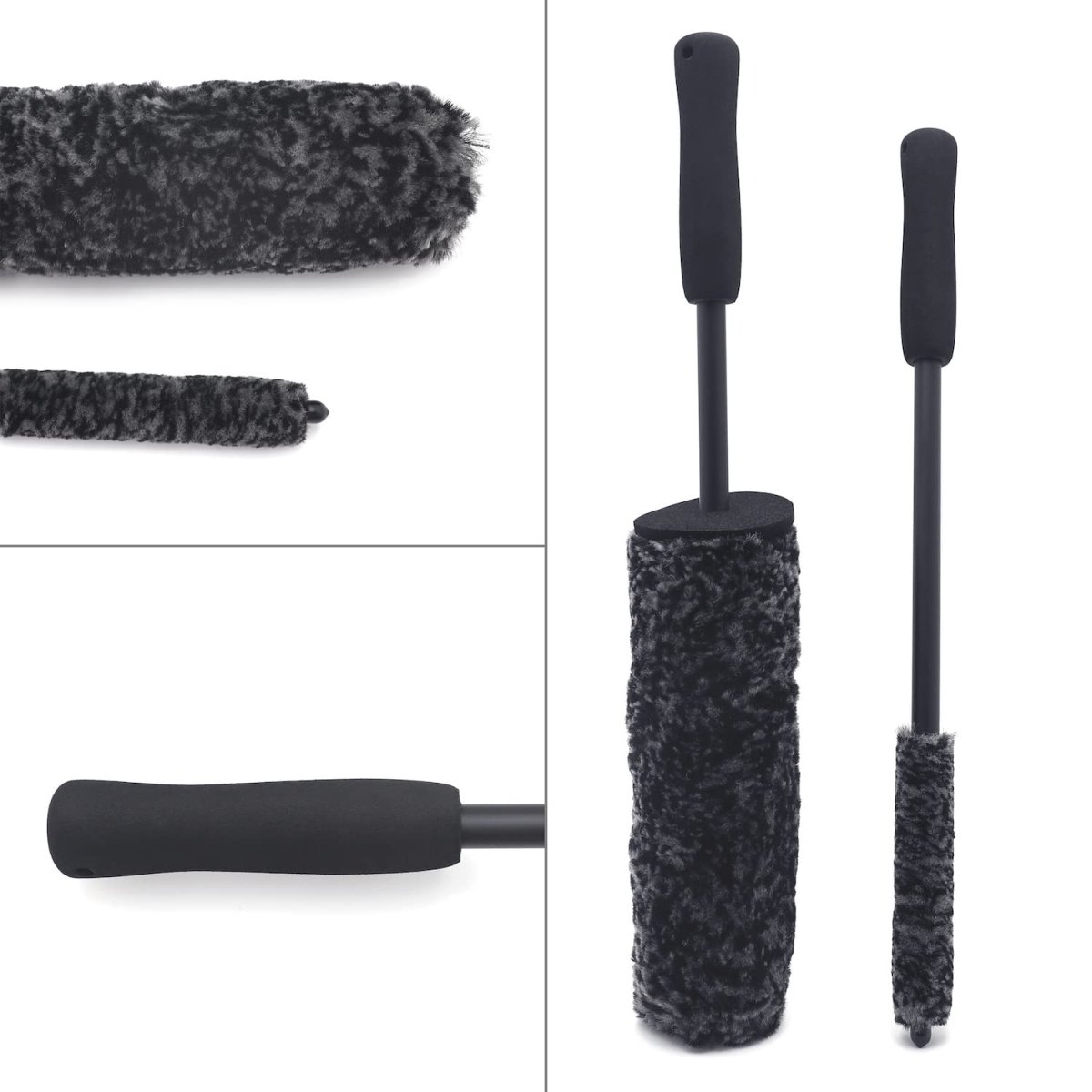 Brand: HTTMT. Type: Car Wheel & Rim Brushes Set. Make your car spotless: accomplish the look of clean wheels & rims inside and outside, remove road grime and brake dust without damaging your wheels or getting your hands dirty.. Complete cleaning coverage: flexible (not bendable) brush end to get to various hard-to-reach areas. Large brush for reaching deep into wheels and cleaning the wheel wells on vehicles and RVs. Small brush small gaps such as grills and narrow spoke wheels.. Easy care: plush enough to work well with soapy water and long enough to reach into deep wheel wells. It will not splatter like plastic wheel cleaners; Lint-free and simple to rinse with soap and water and shake dry or air dry, so clean up is simple and effortless..Other fine products