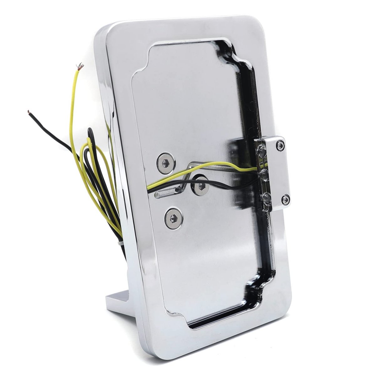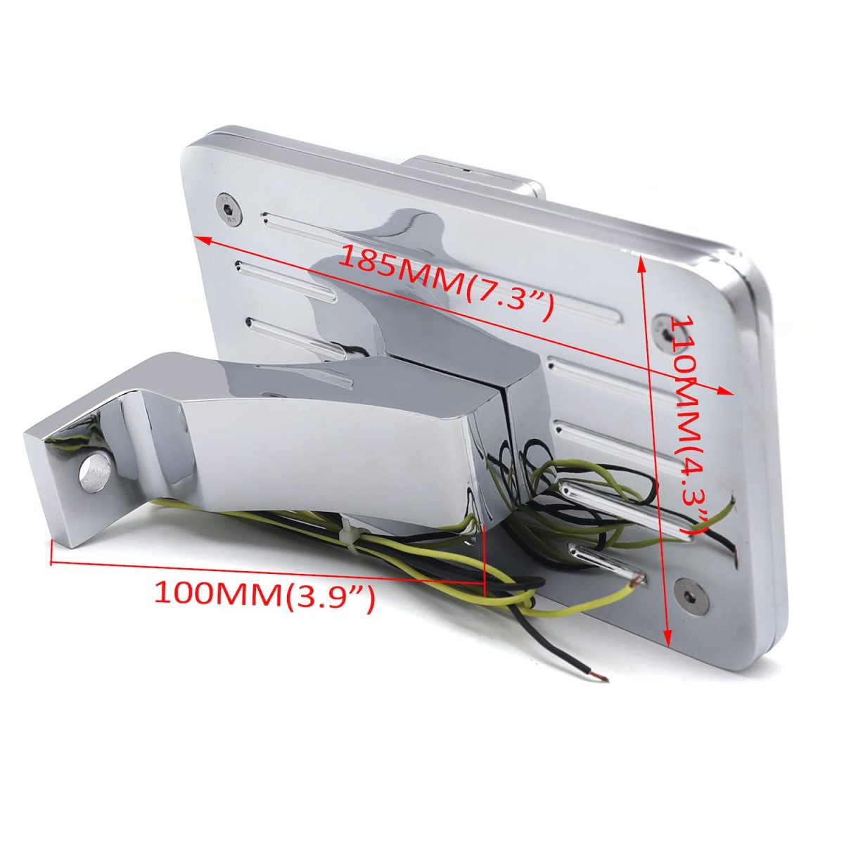 Custom Chromed Billet Aluminum License Plate Bracket with LED light. Relocates your tag to the left or right rear passenger peg mount. No hardware showing on the plate side! This is a must have for the stretched bike enthusiast and can be used on bikes with single or dual exhausts.. Condition: . Pre-drilled for easy installation,Very easy to install. Simply unbolt your axle bolt, slide this into place, and reinstall the axle bolt.. With LED light ,Power: 12V DC.Other fine products