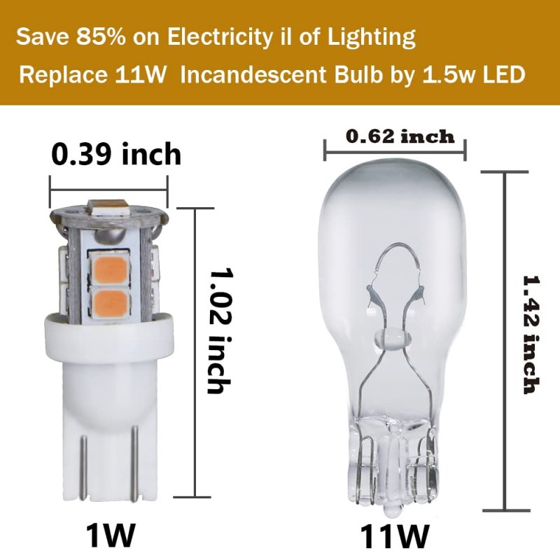 - Huttuubudu Led Landscape Light Bulbs 1w 12v Yellow White 2200ki 7w Low Voltage Equivalenti Wedge Base T5 Malibu Garden 8 Pack