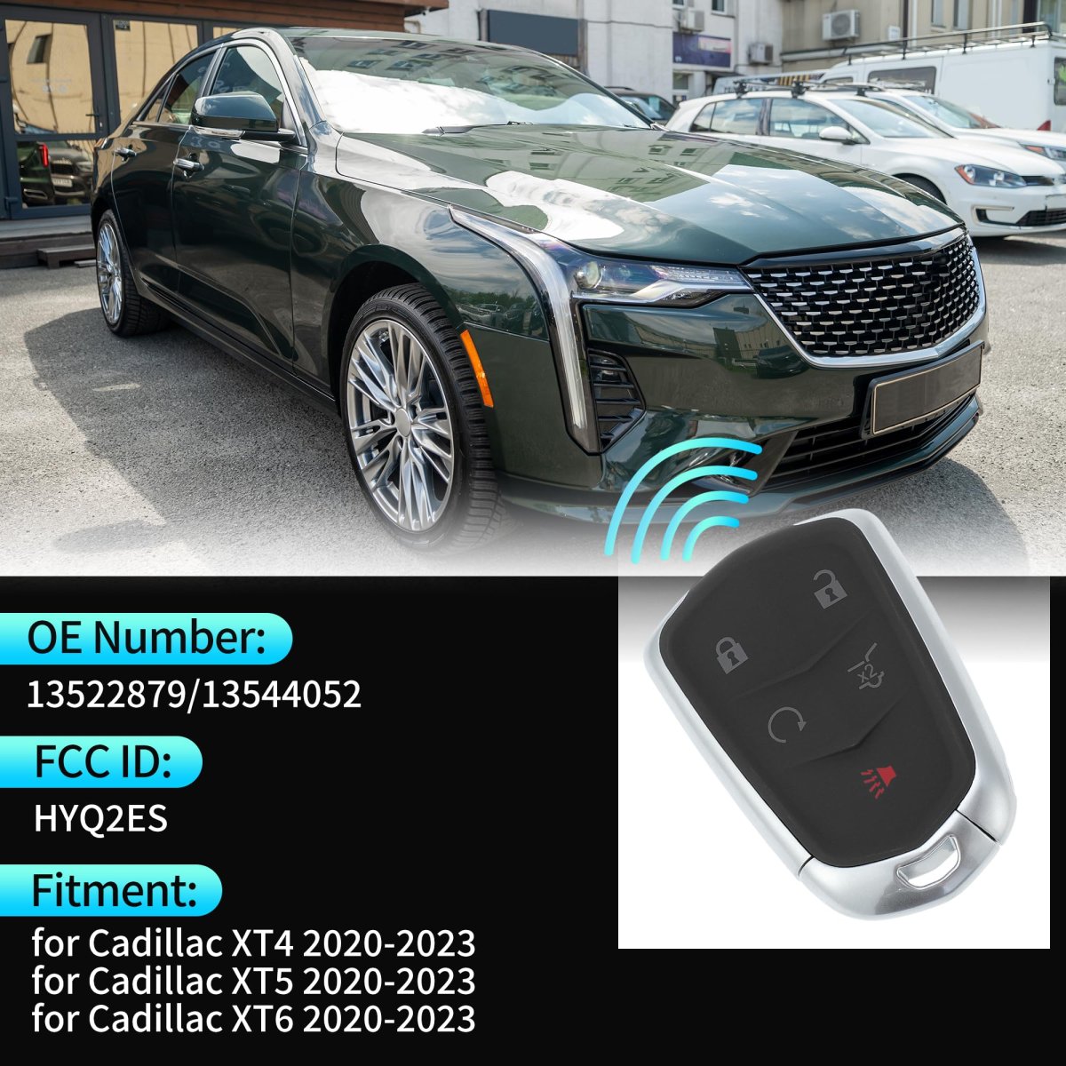 Specification: FCC ID: HYQ2ES, OE Number:13522879/13544052, Frequency: 433 MHz; Buttons: 5 Buttons.. Fitment: Key fob for Cadillac XT4 2020-2023, for Cadillac XT5 2020-2023, for Cadillac XT6 2020-2023.. Notice Key Programming: This remote and door key must be programmed and cut by a qualified locksmith or dealership(consult some different locksmiths before programming to ensure it is successful).NOTE a working key fob was needed in order to add a new key. This remote must be programmed and cut by a qualified locksmith or dealership. Package for car key fob: 1 x Car Keyless Entry Remote (Battery Included)..Other fine products