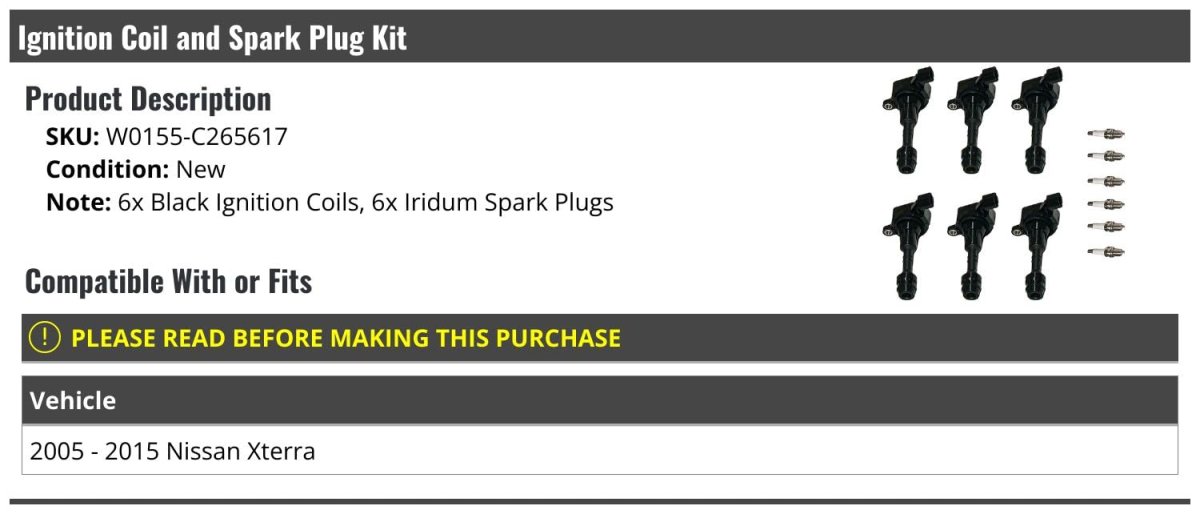 - Ignition Coil And Iridium Spark Plug Kit 12-piece For 2005-2015 Nissan Xterra