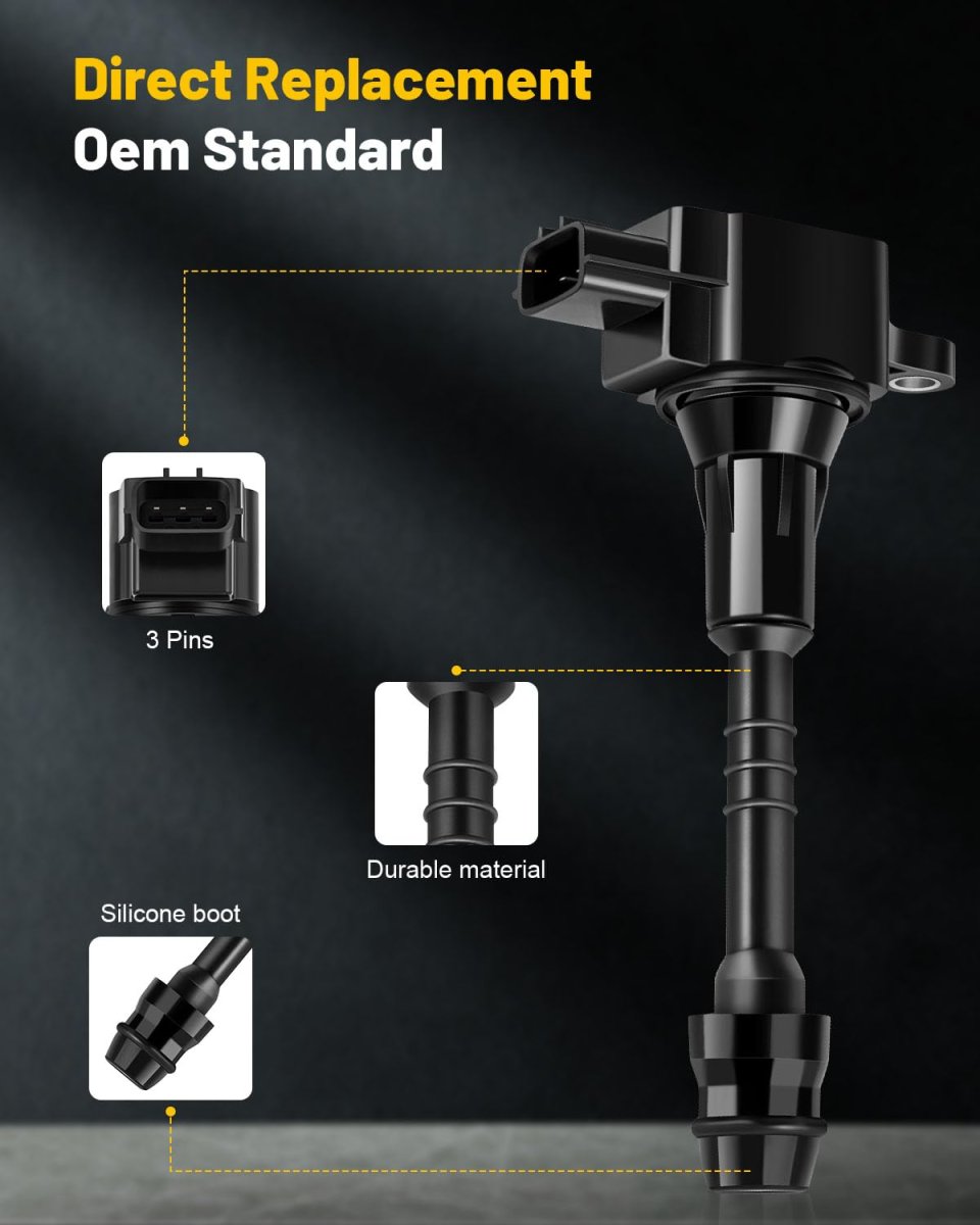 Compatible Vehicle:for Nissan 2001-2005 Almera 1.8L L4,Compatible for Nissan 2002-2006 Sentra 1.8L L4. Replaces OEM Part Numbers:22448-6N015 22433-6N015 22448-6N011, 5C1394 50078 C1397 UF351, 5C1394, E1048, E381, 52-1745, IC481, 22433-6N015, 22448-6N015, UF-351, UF-548, UF351 224486N015 22448-6N015 224486N011 22448-6N011 224336N015 B335. Premium Quality Material:You'll have an easy time mounting these coils due to their lightweight and winding construction. The copper material ensures maximum power delivery to the spark plugs. They come pre-greased for direct replacement.Superior winding process yields greater wire length control, which means less chance of a breakdown of the wire coating and insulation. Material resists pinholes and cracks that can cause failures. Function & OEM Fit:OCPTY Ignition Coils are engineered for original equipment and replacement applications.Every component either matches or improves on the OE design to ensure fast and easy installation with superior performance and reliability.The ignition coil acts like a transformer.the ignition coil transforms the electrical energy from the vehicle battery into high voltage, saves it briefly and then emits it as a high voltage current pulse to the spark plug.Other fine products