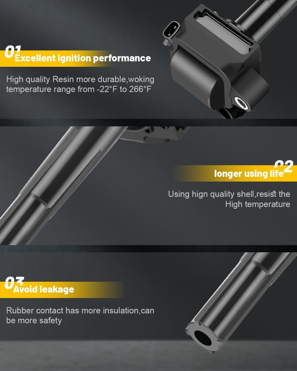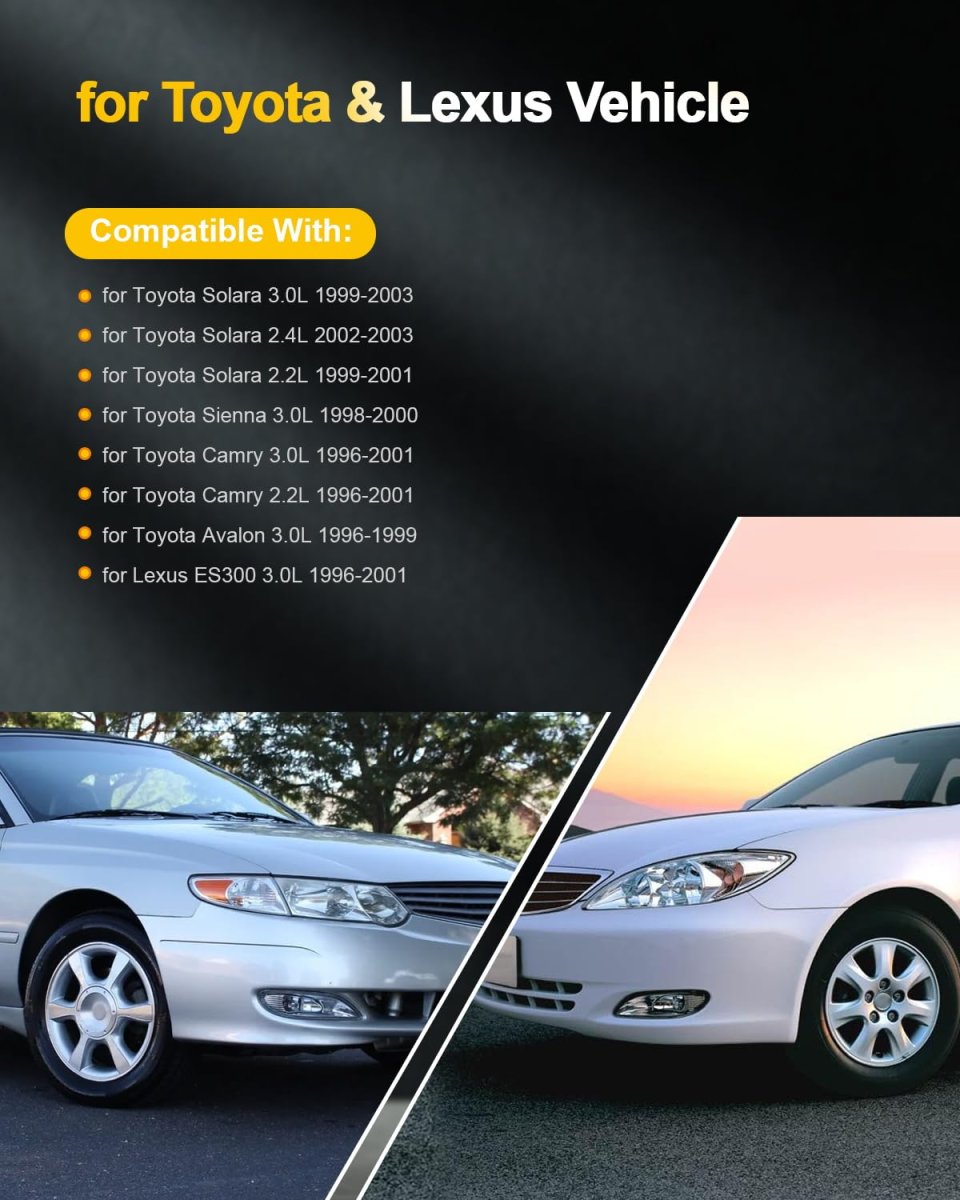 Compatible Vehicle : for Toyota Solara 3.0L 1999-2003,for Toyota Solara 2.4L 2002-2003,for Toyota Solara 2.2L 1999-2001,for Toyota Sienna 3.0L 1998-2000,for Toyota Camry 3.0L 1996-2001,for Toyota Camry 2.2L 1996-2001,for Toyota Avalon 3.0L 1996-1999,for Lexus ES300 3.0L 1996-2001. Replaces OEM Part Numbers : 90919-02215, 90080-19012, 9008019012, 9091902215, 88921336, DMB1143, GN10218, 5C1488, E588, E-588, 0040100430. Premium Quality Material :You'll have an easy time mounting these coils due to their lightweight and winding construction. The copper material ensures maximum power delivery to the spark plugs. They come pre-greased for direct replacement.Superior winding process yields greater wire length control, which means less chance of a breakdown of the wire coating and insulation. Material resists pinholes and cracks that can cause failures. Function & OEM Fit:OCPTY Ignition Coils are engineered for original equipment and replacement applications.Every component either matches or improves on the OE design to ensure fast and easy installation with superior performance and reliability.The ignition coil acts like a transformer.the ignition coil transforms the electrical energy from the vehicle battery into high voltage, saves it briefly and then emits it as a high voltage current pulse to the spark plug.Other fine products