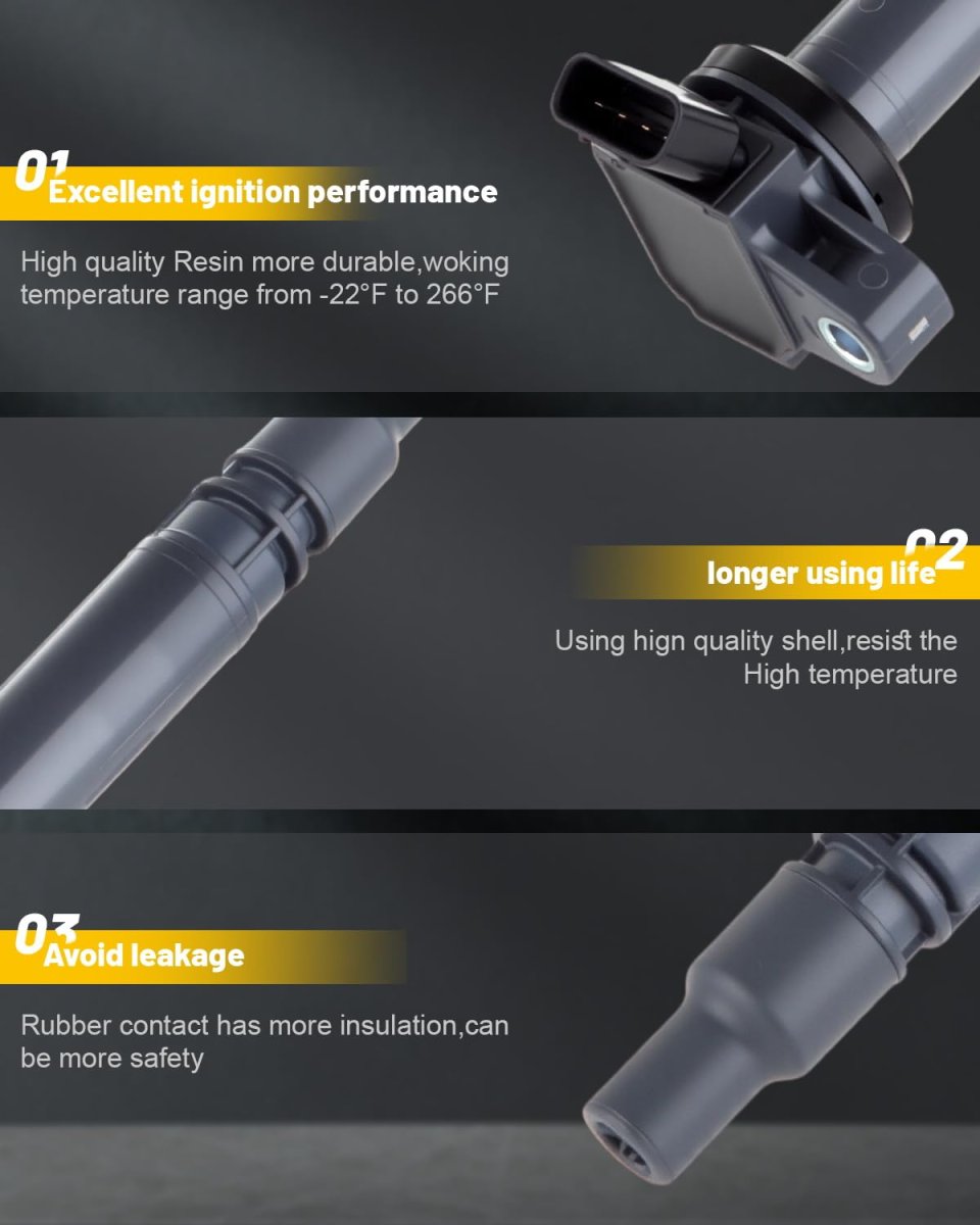 Compatible Vehicle : for Toyota Matrix 1.8L 2003 2004 20052006,for Toyota for Corolla 1.8L 2005-2006,for Pontiac Vibe 1.8L 2003 2004 2005. Replaces OEM Part Numbers : C1306 5c1295 E344 52-1691 Ic444 88970216 Uf-314 90919-02238 6731305 E516d C1306 89057979. Premium Quality Material :You'll have an easy time mounting these coils due to their lightweight and winding construction. The copper material ensures maximum power delivery to the spark plugs. They come pre-greased for direct replacement.Superior winding process yields greater wire length control, which means less chance of a breakdown of the wire coating and insulation. Material resists pinholes and cracks that can cause failures. Function & OEM Fit:OCPTY Ignition Coils are engineered for original equipment and replacement applications.Every component either matches or improves on the OE design to ensure fast and easy installation with superior performance and reliability.The ignition coil acts like a transformer.the ignition coil transforms the electrical energy from the vehicle battery into high voltage, saves it briefly and then emits it as a high voltage current pulse to the spark plug.Other fine products