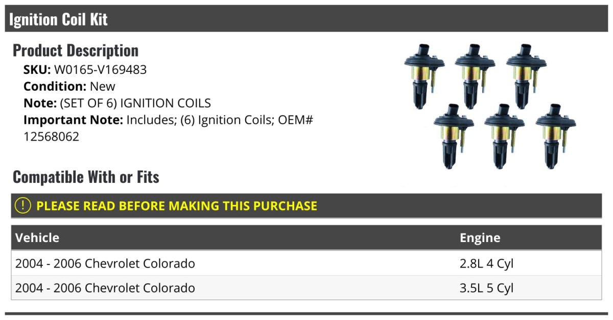 - Ignition Coil Kit Set Of 6 For 2004-2006 Chevy Colorado