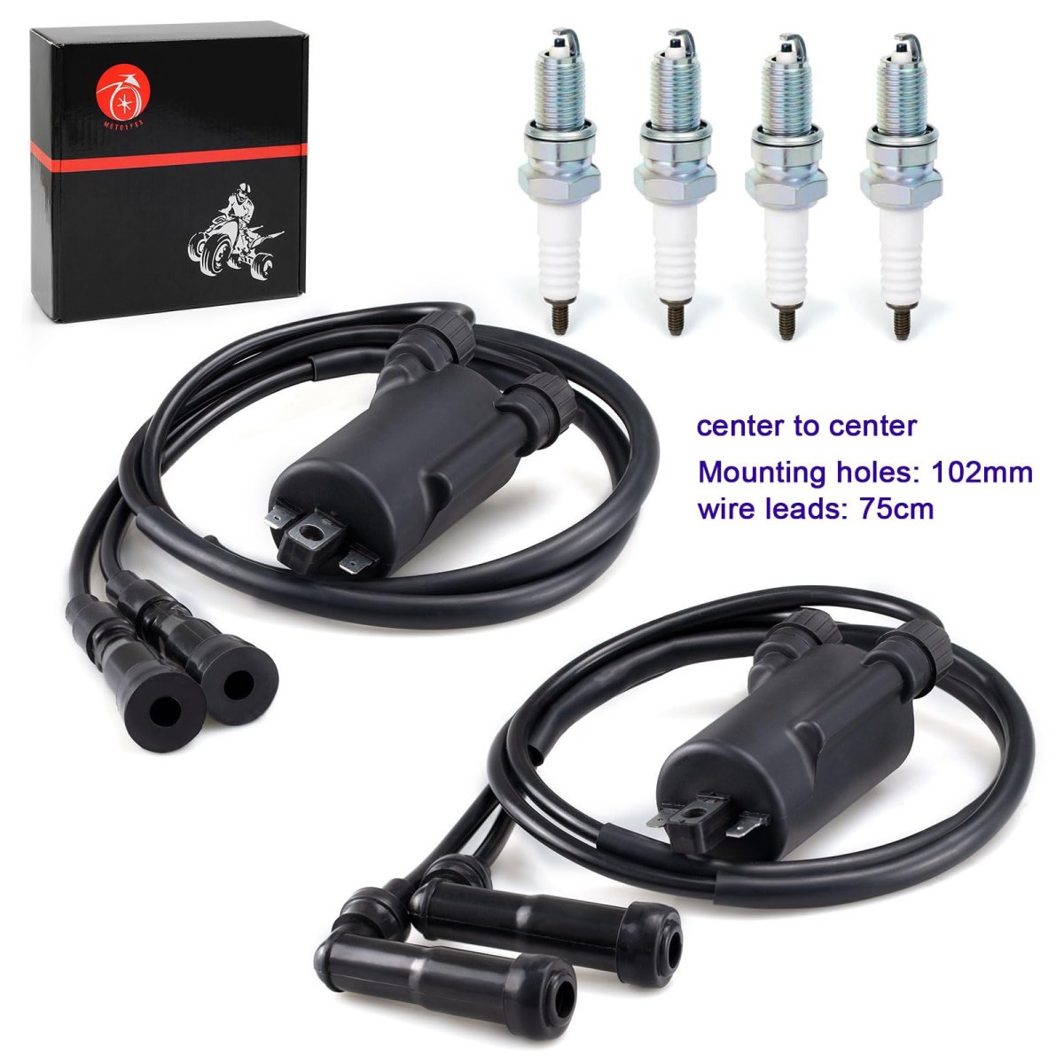 Compatible Models:For HONDA Goldwing 1100 GL1100 1980-1981 Goldwing 1100 GL1100I 1980-1981 Goldwing 1200 GL1200 1984-1987 CB650 1979-1982 CB650C 1980-1981 Nighthawk 650 CB650SC 1982-1985 CB750K 1979-1982 CB750L 1979 CB750C 1980-1982. Compatible Models:For HONDA CB750F 1979-1982 Nighthawk 750 CB750SC 1982-1983 CB900C 1980-1982 CB900F 1981-1982 CBX Super Sport 1979-1982 Magna 700 VF700C 1984-1986 VF700S 1984-1985 V45 Magna 750 VF750C 1982-1983 V45 SABRE VF750S 1983 V65 Magna 1100 VF1100C 1983-1986. Manufacturer Part:30500-422-003center to center Mounting holes: 102mm wire leads75cm. Replacement Part:30500-422-013 30510-MA6-013. Package:2x Ignition Coil,4x spark plug Cap,4x spark plug.Other fine products