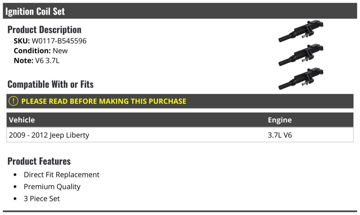 - Ignition Coil Set 3 Piece For 2009-2012 Jeep Liberty 7l V6