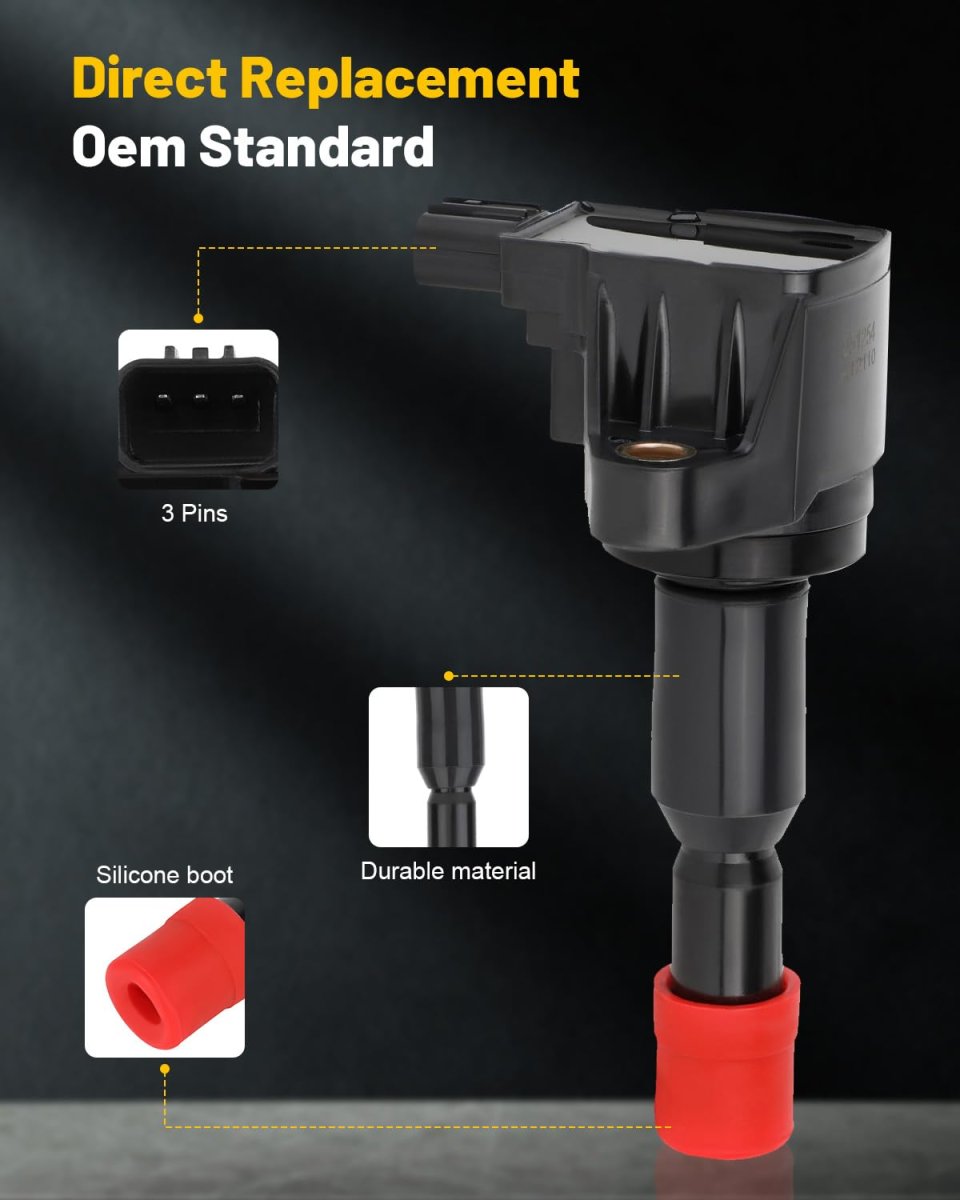 [Compatible with]: for Honda Fit 2007-2008. [Replace Part Number]: 4 Ignition Coils with 4 Iridium Spark Plugs ReplaceUF-581, 30520-PWC-003, UF581, 30520PWC003, NGK94279, 94279. [Durable & Reliable]: Our ignition coils are made from high-quality materials, including imported copper wire and alloy steel, which provide excellent conductivity and resistance to corrosion. This ensures stable high-voltage output and long-lasting performance under extreme conditions. [Enhanced Features for Faster Starts]: The included iridium spark plugs offer refined center electrode technology to maximize spark energy, improving ignitibility and ensuring smoother engine operation without worrying about misfires. This upgrade contributes to a more efficient fuel combustion process. [Restore Engine Efficiency]: Designed as direct replacements, these ignition coils address common issues like poor gas mileage, engine misfires, rough idling, and check engine lights. By replacing faulty coils, you can enhance drivability and restore your vehicle's performance.Other fine products