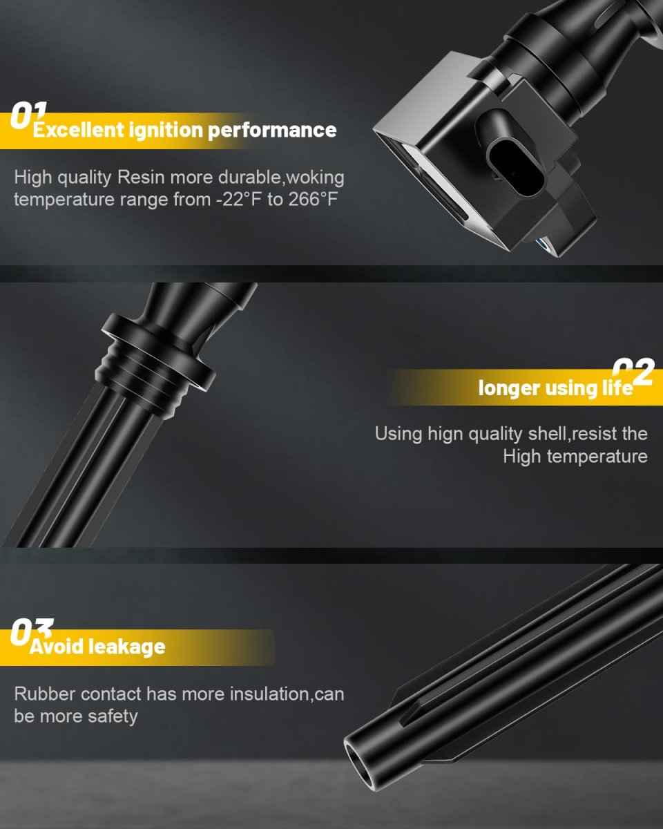 [Compatible with]: 2020-2021 for Land Rover Defender 110 2.0L, 2022-2023 for Land Rover Defender 110 5.0L, 2022-2023 for Land Rover Defender 90 5.0L, 2017-2020 for Land Rover Discovery 3.0L, 2021 for Land Rover Discovery Sport 2.0L, 2014-2016 for Land Rover LR4 3.0L, 2014-2019 for Land Rover Range Rover 3.0L, 2013-2022 for Land Rover Range Rover 5.0L, 2021 for Land Rover Range Rover Evoque 2.0L, 2014-2018 for Land Rover Range Rover Sport 3.0L, 2014-2022 for Land Rover Range Rover Sport 5.0L, 201. [Replace Part Number]: UF-730, DX23-12A366-AC, LR035548, NGK93476. [Durable & Reliable]: Our ignition coils are made from high-quality materials, including imported copper wire and alloy steel, which provide excellent conductivity and resistance to corrosion. This ensures stable high-voltage output and long-lasting performance under extreme conditions. [Enhanced Features for Faster Starts]: The included iridium spark plugs offer refined center electrode technology to maximize spark energy, improving ignitibility and ensuring smoother engine operation without worrying about misfires. This upgrade contributes to a more efficient fuel combustion process. [Restore Engine Efficiency]: Designed as direct replacements, these ignition coils address common issues like poor gas mileage, engine misfires, rough idling, and check engine lights. By replacing faulty coils, you can enhance drivability and restore your vehicle's performance.Other fine products