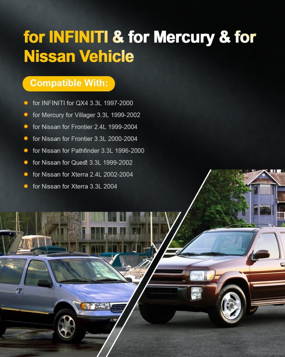 [VEHICLES FIT]: Fits for INFINITI QX4 3.3L 1997-2000, for Mercury Villager 3.3L 1999-2002, for Nissan Frontier 2.4L 1999-2004, for Nissan Frontier 3.3L 2000-2004, for Nissan Pathfinder 3.3L 1996-2000, for Nissan Quest 3.3L 1999-2002, for Nissan Xterra 2.4L 2002-2004, for Nissan Xterra 3.3L 2004. [OCPTY IGNITION COIL PACK]: Is your car experiencing rough idling or misfires? Does it struggle with poor acceleration and excessive fuel consumption? These symptoms often indicate failing ignition coils or worn spark plugs. A faulty coil pack can drastically reduce engine performance, cause hard starts, and even damage other parts like the catalytic converter. Though compact, ignition coil packs play a critical role in your vehicle's combustion system. [DURABLE & RELIABLE]: OCPTY ignition coil packs are crafted with premium automotive replacement ignition coil materials, featuring high-grade copper windings and alloy steel cores for superior conductivity and corrosion resistance. This coil pack set delivers consistent high-voltage output and extended durability even in harsh engine environments.Other fine products