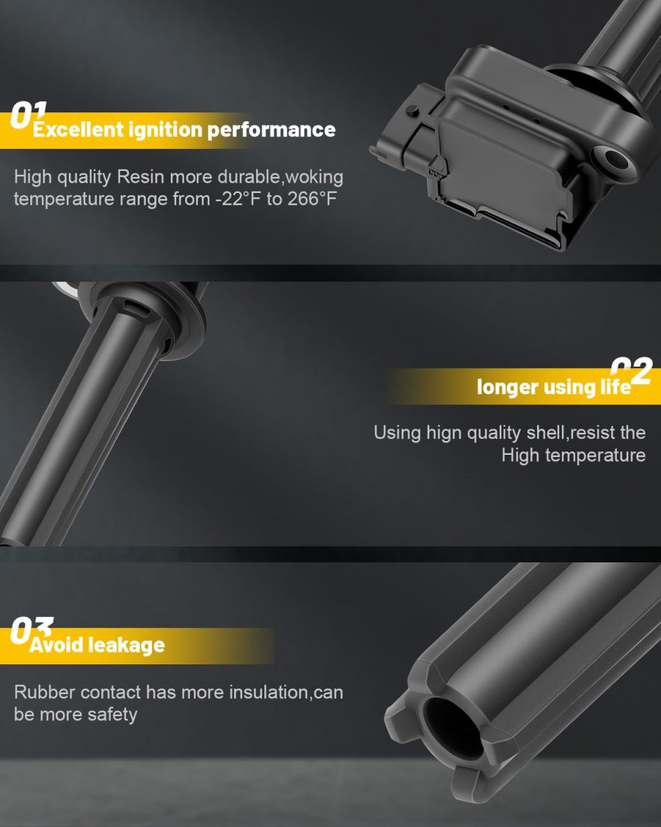 [VEHICLES FIT]: Fits for Saab 9-3 2.0L 2003-2011. [OCPTY IGNITION COIL PACK]: Is your car experiencing rough idling or misfires? Does it struggle with poor acceleration and excessive fuel consumption? These symptoms often indicate failing ignition coils or worn spark plugs. A faulty coil pack can drastically reduce engine performance, cause hard starts, and even damage other parts like the catalytic converter. Though compact, ignition coil packs play a critical role in your vehicle's combustion system. [DURABLE & RELIABLE]: OCPTY ignition coil packs are crafted with premium automotive replacement ignition coil materials, featuring high-grade copper windings and alloy steel cores for superior conductivity and corrosion resistance. This coil pack set delivers consistent high-voltage output and extended durability even in harsh engine environments.Other fine products
