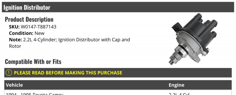 - Ignition Distributor With Cap And Rotor Compatible 1994-1995 Toyota Camry 2 2l 4-cylinder