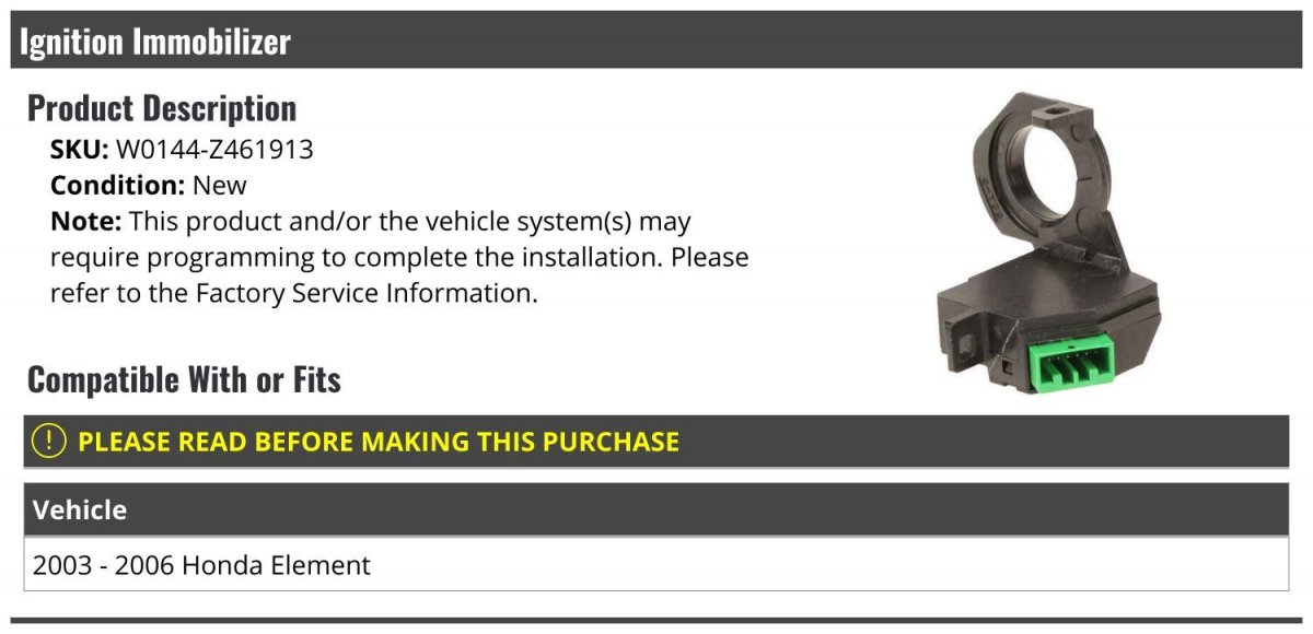 - Ignition Immobilizer For 2003-2006 Honda Element