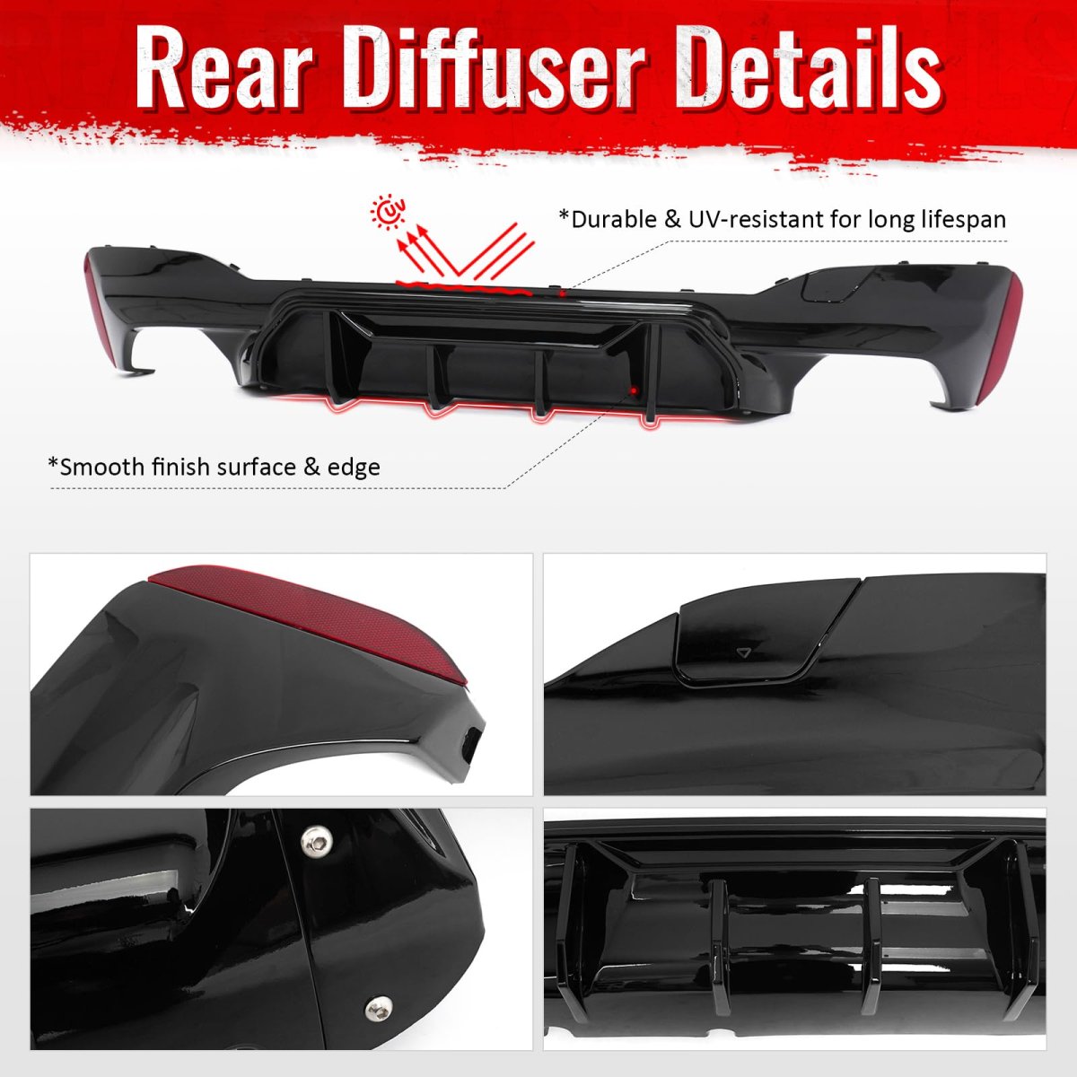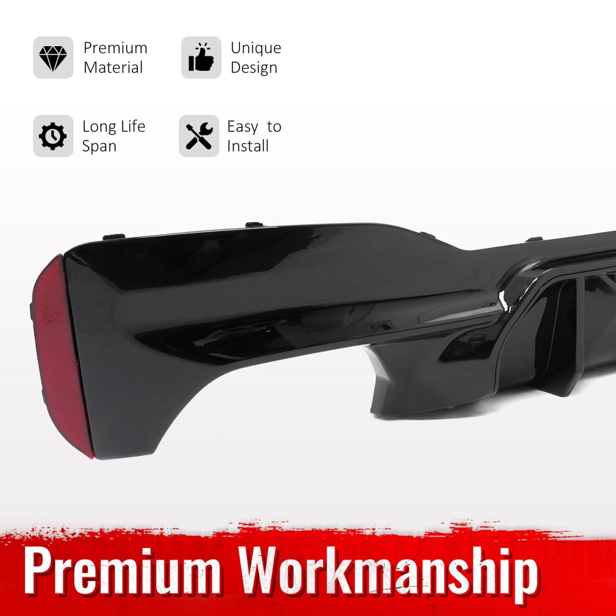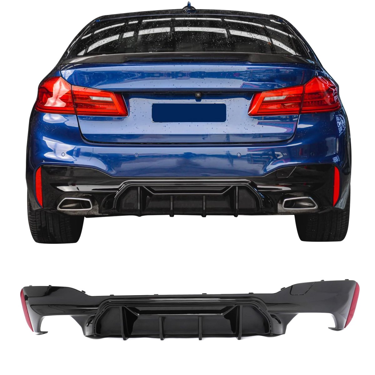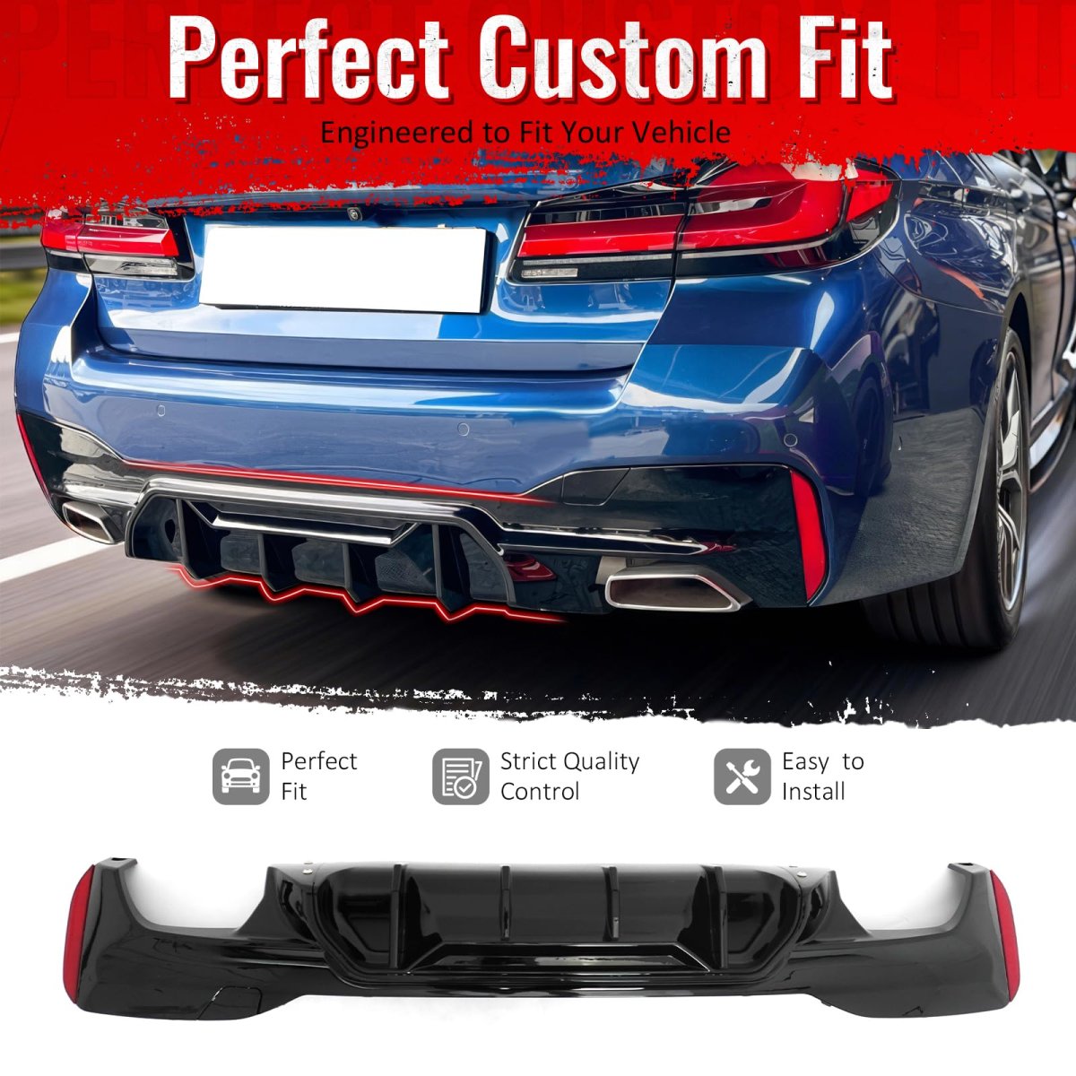 Custom Fitment: IKON MOTORSPORTS custom fit rear bumper diffuser lip Fits 2017-2023 BMW 5 Series G30 520/530/540/M550i Sedan. Only Fits M Sport Bumper. Note: Directly Fit Factory Square Exhaust. M550i will need Modify Exhaust. Exclude F90 M5., precision injection molded for an perfect fit with no modifications required, which makes it an ideal upgrade for your vehicle.. Superior Protection: This rear body splitter valance made of high-quality PP - Polypropylene, which is known for its light-weight, durable and impact resistance, perfectly protects the original bumper from bumps and scratches on the road.. Aerodynamic Design: Classic F90 M5 M Perfermance Style air dam rear under chin spoiler visually enhances the car's performance appearance; it improves aerodynamic efficiency by reducing lift and enhancing stability at high speeds, ensuring driving safety and reducing fuel consumption.. Ready to Install: Ships in Gloss Black surface finish rear bumper protector lip/diffuser, ready to install, no need to painting. UV-protected clear coated, resistant to fading for longer life-span.. Installation: Smooth cutout will not scratch car body, no modification required, installation can be done easily. If you want to install it yourself, you can watch the installation video on Web for some installation tips. Of course, IKON MOTORSPORTS always recommends professional installation. Do not forget to keep your vehicle clean and dry before installation..Other fine products
