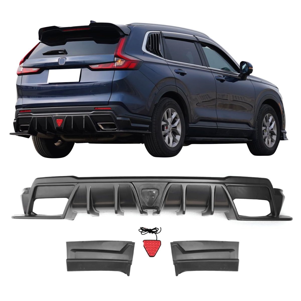 Custom Fitment: IKON MOTORSPORTS custom fit rear bumper diffuser lip Fits 2023-2026 Honda CR-V Hybrid Models Only, precision injection molded for an perfect fit with no modifications required, which makes it an ideal upgrade for your vehicle.. Superior Protection: This rear body splitter valance made of high-quality PP - Polypropylene ( Factory Grade Plastic), which is known for its light-weight, durable and impact resistance, perfectly protects the original bumper from bumps and scratches on the road.. Aerodynamic Design: Classic apperance air dam rear under chin spoiler not only makes your car more aggressive, but also have functional advantages. It helps to improve aerodynamic efficiency by directing airflow more effectively, reducing lift and enhancing stability, especially at high speeds. Youll experience improved handling and maneuverability like never before.. Ready to Install: Ships in Matte Black surface finish rear bumper protector lip/diffuser, ready to install, no need to painting. UV-protected clear coated, resistant to fading for longer life-span.. Installation: Smooth cutout will not scratch car body, no modification required, installation can be done easily. If you want to install it yourself, you can watch the installation video on Web for some installation tips. Of course, IKON MOTORSPORTS always recommends professional installation. Do not forget to keep your vehicle clean and dry before installation..Other fine products