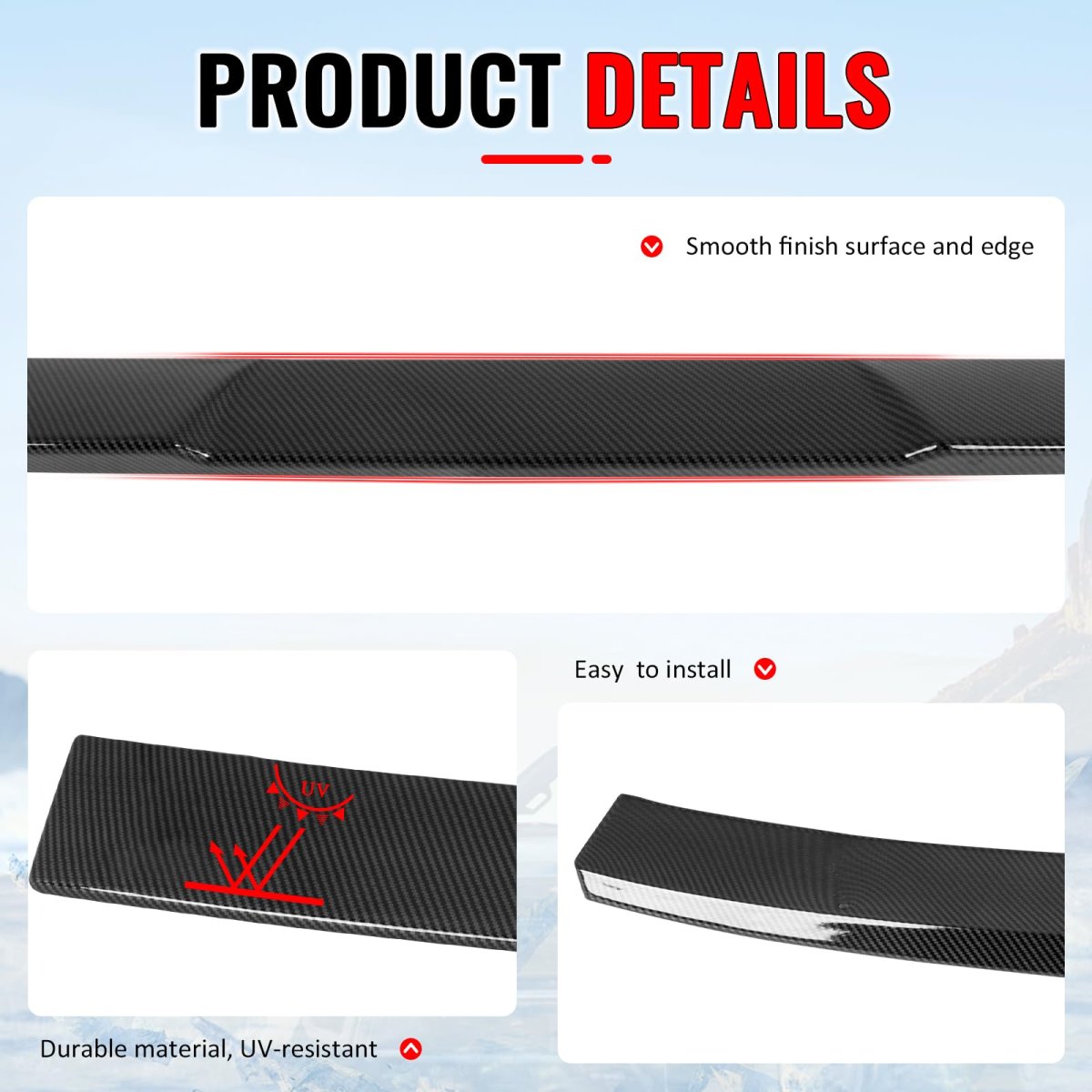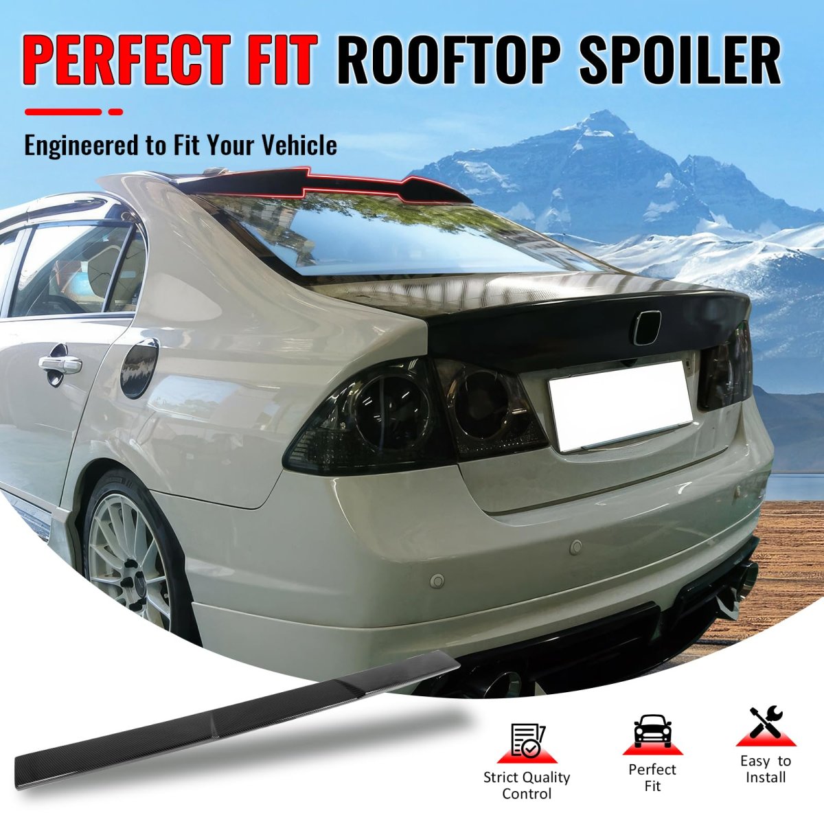 Perfect Compatibility: IKON MOTORSPORTS custom fit rear window spoiler Fits 2006-2015 Honda Civic Sedan 4-Door. Direct add-on roof spoiler fits the shape of the window perfectly from one corner to the other.. Durable Material: This top windshield spoiler made of high-quality and durable ABS, which is light weight but durability to withstand extreme weather conditions for long lasting use.. Stylish Design: This Carbon Fiber Print and V Style roofline spoiler wind deflector is uniquely designed to add a aggressive style. It helps to elevate your vehicle above the masses and ensure it will look stunning for years to come.. Easy to Install: Come with 1x Roof Spoiler. This roof wing deflector can be easily installed with double-sided tape. It may require drilling or modification if you wish to use it for a longer period of time. Before you put roof wing spoiler on, it is helpful to watch some web installation videos for tips. Of course, professional installation is highly recommended.. Improve Aerodynamics & Performance: The rear window top spoiler belongs to the aerodynamics package. After installing the spoiler, it will reduce air resistance while increasing downforce to ensure stability when driving fast. In addition, it is a good helper to save fuel consumption..Other fine products