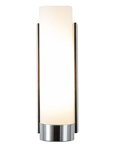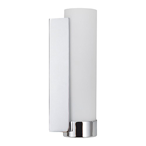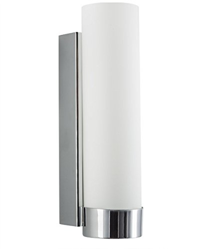 The Elina Wall Sconce brightens any room with its striking contemporary design that features a frosted glass cylinder gracefully nestled into a polished chrome or brushed nickel housing. Perfect for baths, entryways and hallways. Uses one 60W max medium base bulb (not included), UL listed and suitable for damp locations. Model # LL-WL301-PC Features: Contemporary One Light Wall Sconce with an Easy Clean Polished Chrome Finish and Frosted Glass Shade 12-1/4 Inch High; 4 Inches Wide; Extends 4 Inches from Wall Uses One Medium-Base Bulb, 60-WMaximum (Not Included). 25" H.Other fine products