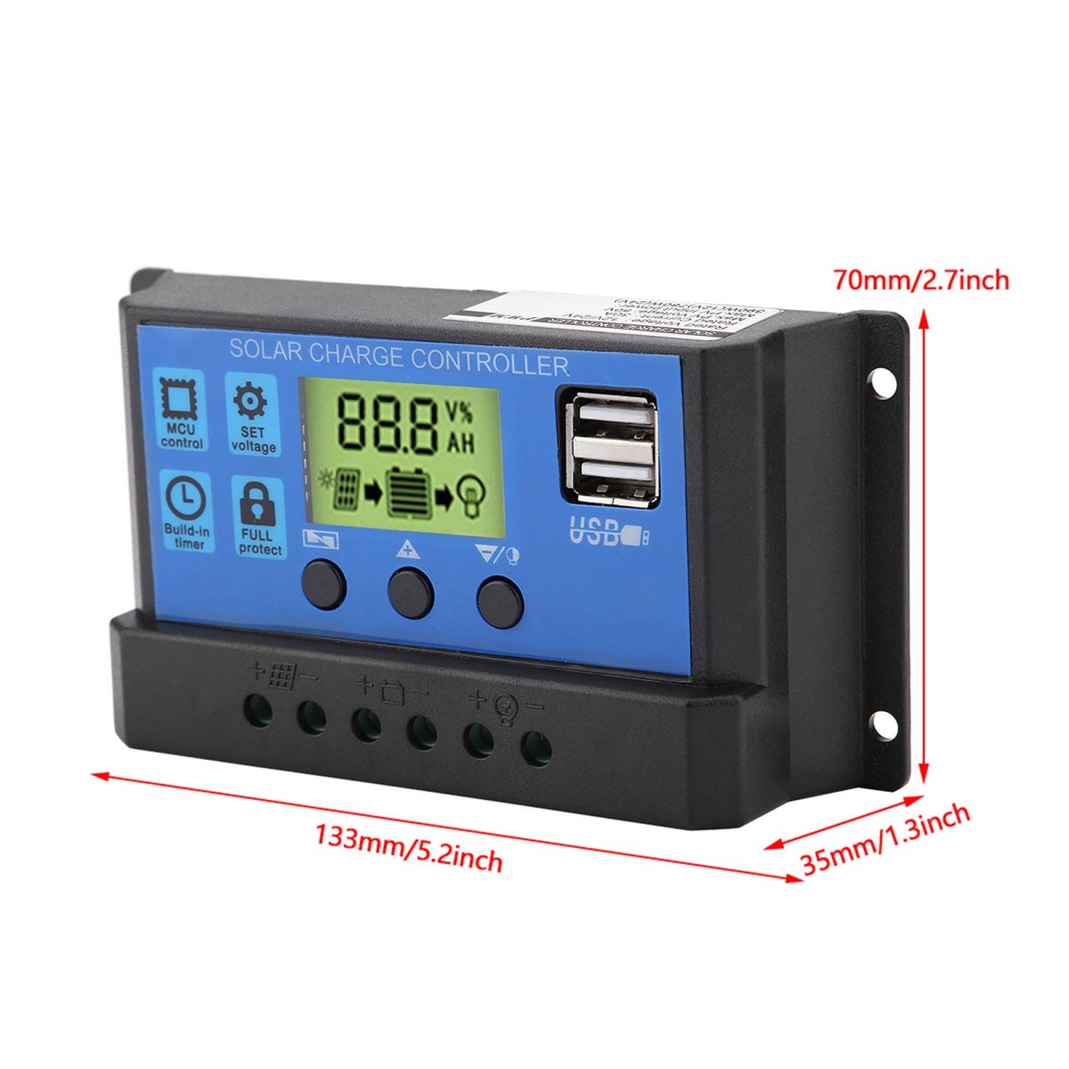 Reliable Performance: ---- This solar charge controller adopts an industrial micro controller, allowing for auto parameter adjustable features to ensure optimal performance tailored for your needs.. High-Resolution LCD Display: ---- The large screen LCD provides clear visibility with backlight, offering an intuitive interface for real-time monitoring of your solar power system.. Efficient PWM Charge Management: ---- Utilizing full 3-stage PWM charge management technology, this controller ensures maximum efficiency while charging your batteries, making it ideal for both sealed and flooded batteries.. Compact and Lightweight Design: ---- With a size of 1337035mm and weighing approximately 148g, this solar panel charge controller is portable and easy to install in various environments..Other fine products