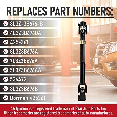 Replacement Intermediate Steering Shaft - keeps the steering gearbox and steering wheel connected. The universal joint or also called as u-joint at the end of the steering shaft connects to the steering gearbox which has another u-joint that connects to the steering wheel allows for the angles between them to be supported resulting to your vehicle wheels smooth and easy turning.. Compatible Replacement for Ford & Lincoln Trucks - 2004, 2005, 2006, 2007, 2008 F150 2006, 2007, 2008 Mark LT The intermediate steering shaft can easily be located inside the engine bay connected to the steering column which is on the driver side of the vehicle. If you are experiencing strange sounds, loose steering wheel tilt, difficulty in turning or your steering wheel does not go back to the center after turning then you may have a problem with your intermediate steering shaft.. Replaces Part# 8L3Z-3B676-B, 4L3Z3B676DA, 425-361, 8L3Z3B676A, 7L3Z3B676A, 5L3Z3B676AA, 536472, 8l3Z3B676B, 425361. The intermediate steering shaft is an important component of your vehicle. It is considered unsafe to drive with a bad steering shaft on your vehicle and may put other people's lives with you at risk as well.. OEM Fit, Quality, Finish - While this is not a genuine OEM part, it is a direct replacement and will fit, work and function like the original part. This replacement intermediate steering shaft with universal joint is manufactured from steel to ensure longevity providing excellent value at the cheapest price possible..Other fine products