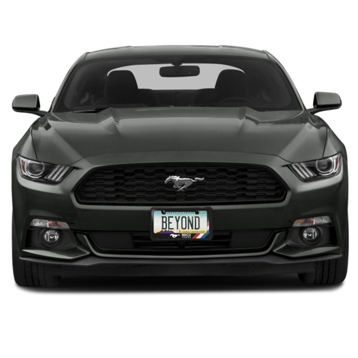 - Ford Mustang 50 Years Tri-bar Sports Stripe Black Metal License Plate Frame