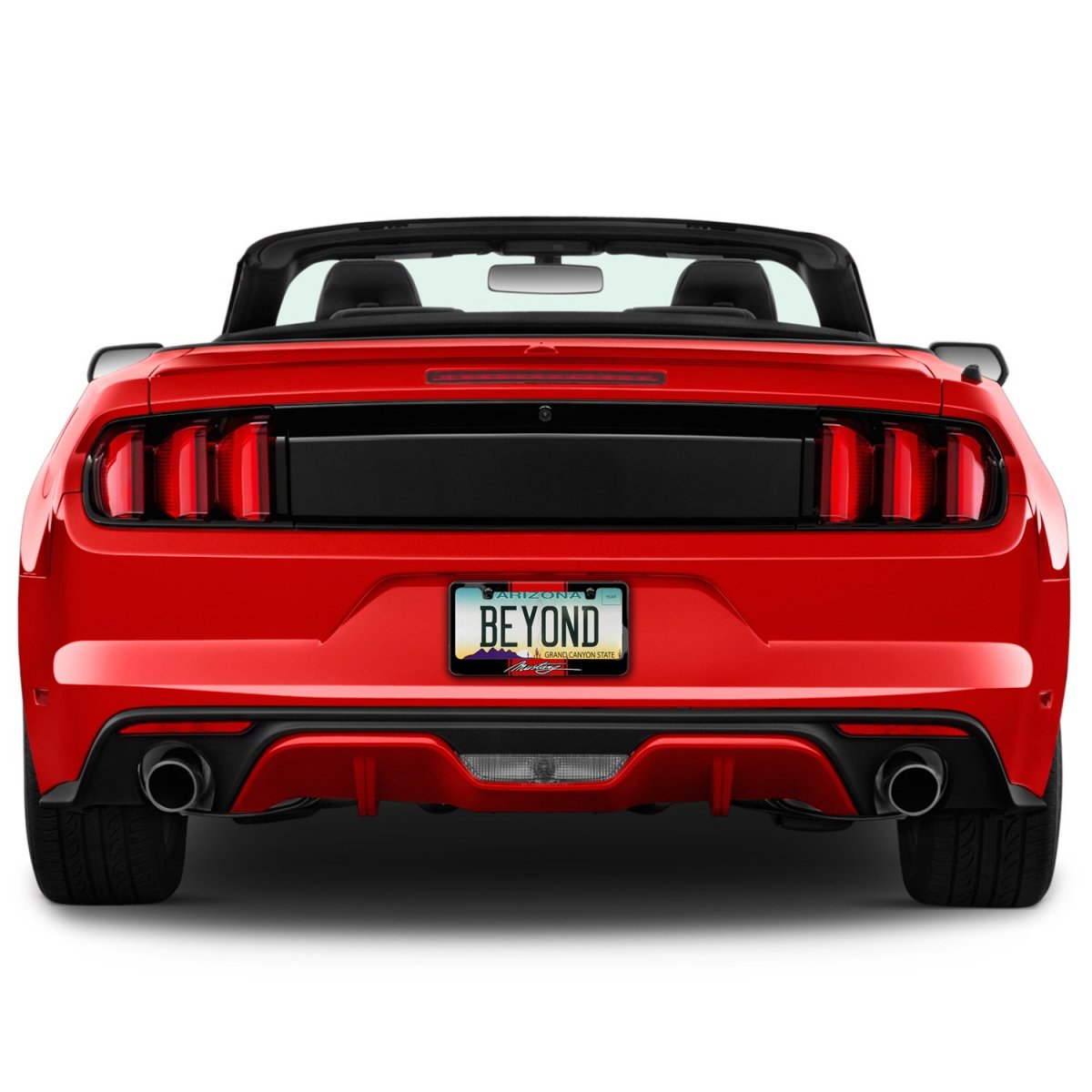 - Ford Mustang Script Red Racing Stripe Black Metal License Plate Frame