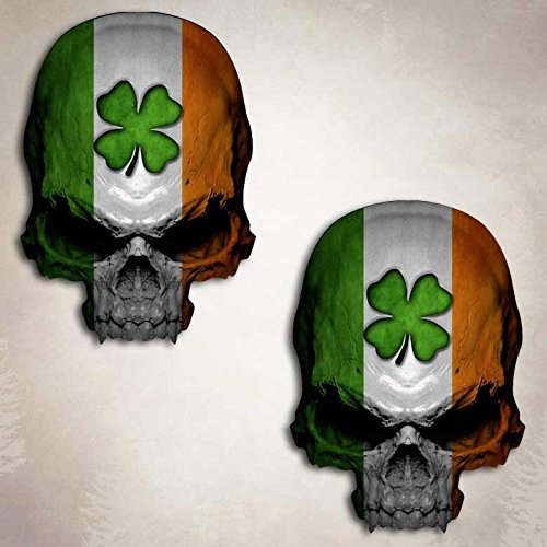 Irish Clover Skull Sticker Set. Both Left and Right are included as shown. Features: 6" x 4" size 2 Decals Included as Shown Multi-Year Outdoor Grade Vinyl Tracking Included Easy Application, Will Not Harm Surface.