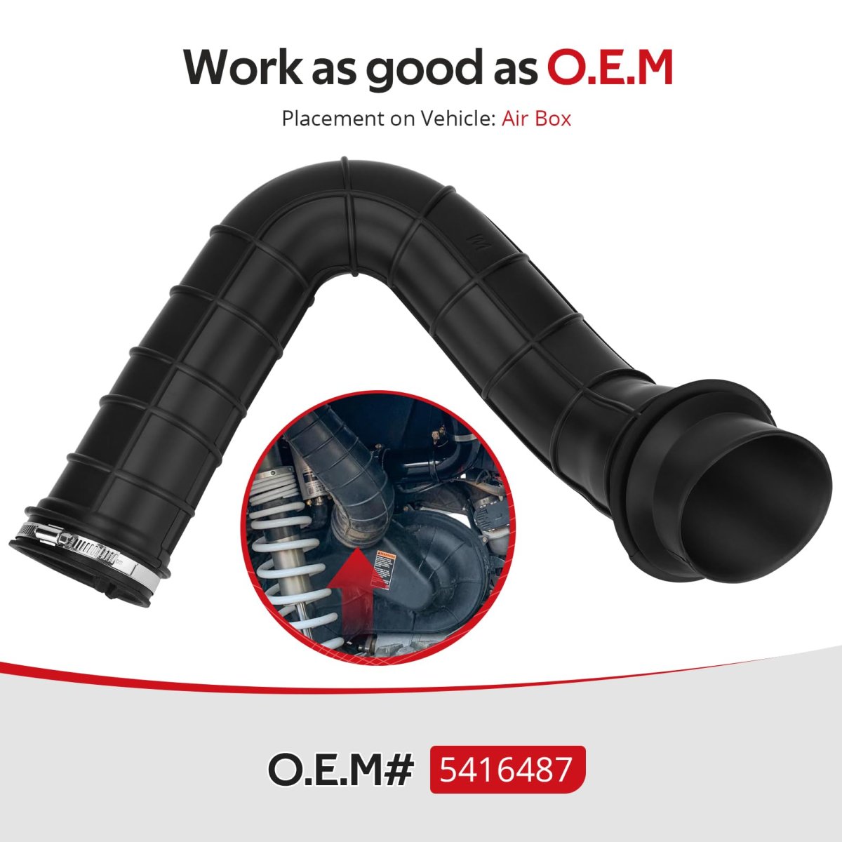 Fitment: Fit For Polaris UTV 2018-2020 RZR Turbo XP SAll Edition; 2020-2021 RZR Turbo SAll Edition. Feature: Well made, thick rubber. Easy to install with hardy replacement clamps. Ensures proper airflow to engine and prevents dust and debris entry. O.E.M# 5416487. Package: Airbox Hose In x1; Clamp x1.Other fine products