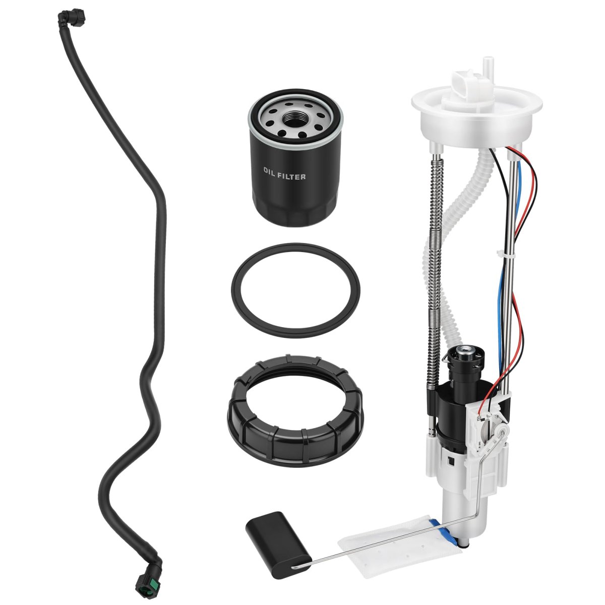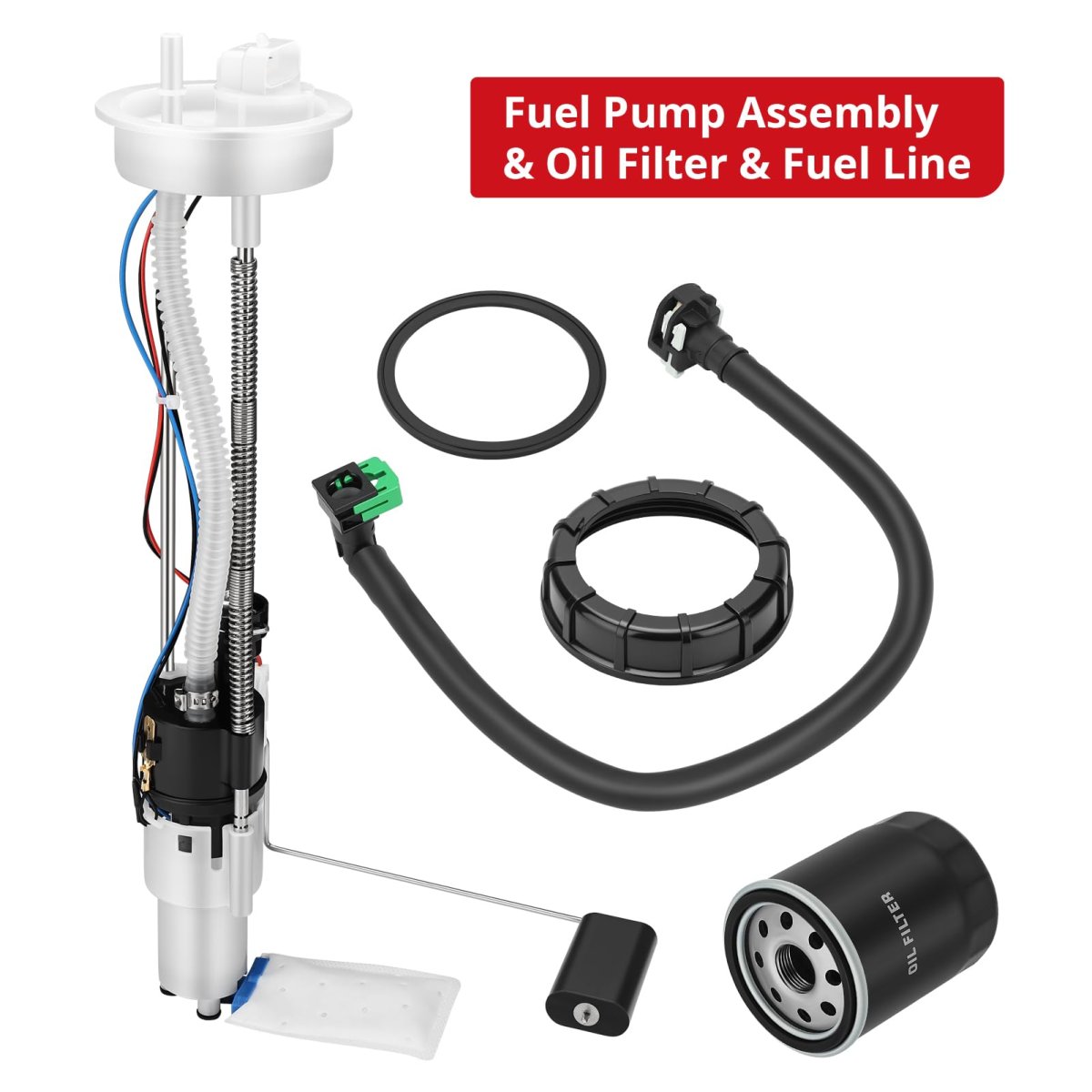 Fitment: Fit for Polaris UTV 2011-2012 Ranger 800 XP; 2011-2012 Ranger 800 XP EPS; 2011-2012 Ranger 800 HD EPS; 2011-2012 Ranger 800 Crew; 2011-2012 Ranger 800 Crew EPS. Feature: Fuel pump offers a continuous, stable supply of fuel and maintains the fuel system in proper working condition.Replacing oil filter regularly keeps your oil clean and motor running good. O.E.M# 2521152 2204402. Package: Fuel Line Assembly x1; Fuel Pump Assembly x1; Oil Filter x1.Other fine products