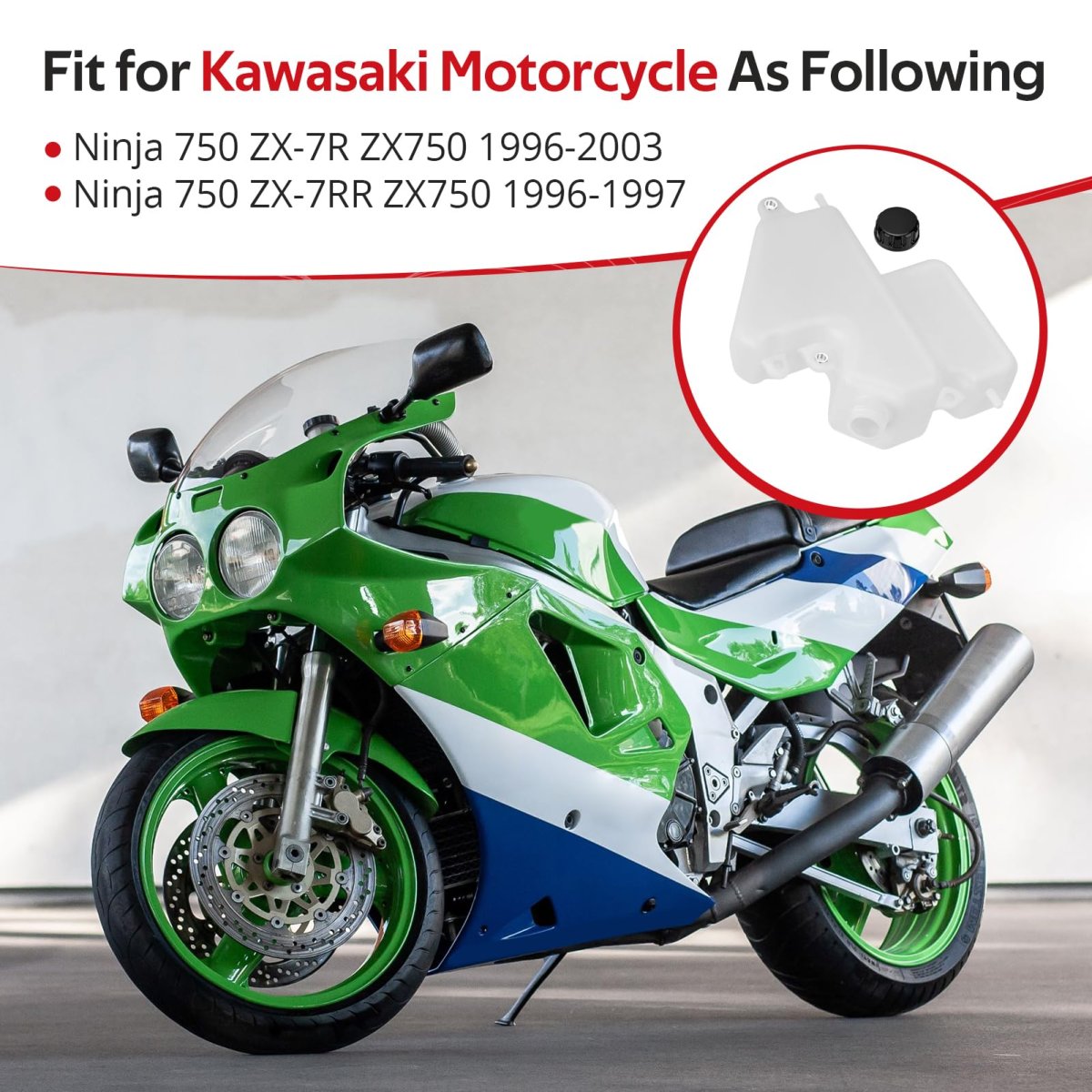 Fitment: Fit for Kawasaki Motorcycle As Following: 1996-1997 Ninja 750 ZX-7RR ZX750; 1996-2003 Ninja 750 ZX-7R ZX750. Feature: Well made and you do not worried about it cracking due to the sun anytime in the near future. Run coolant lines to radiator. No need to drill the holes bigger to get the screws to line up with the screw ports. O.E.M# 43078-1170. Package: Radiator Reservoir x1.Other fine products