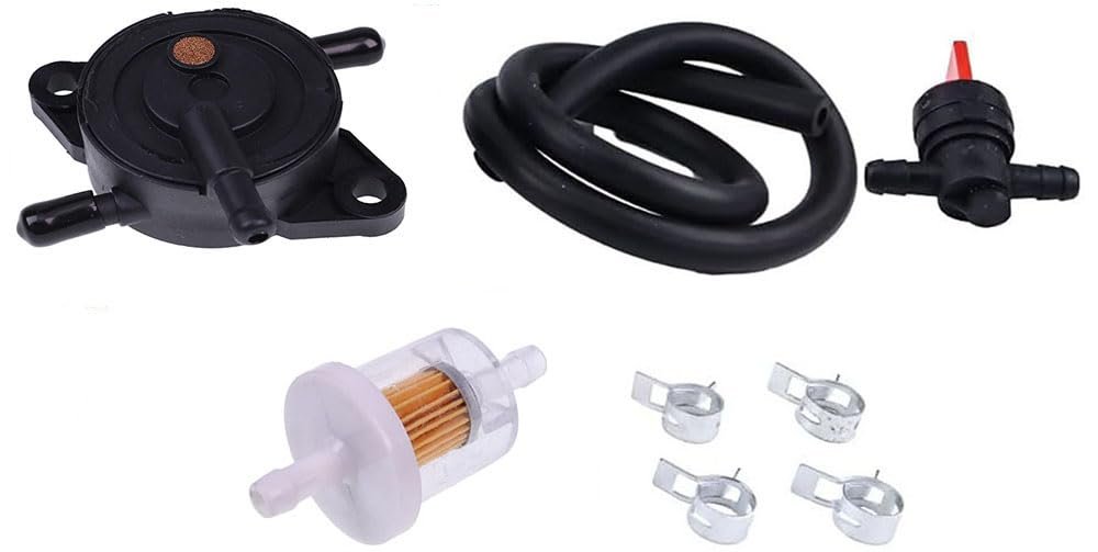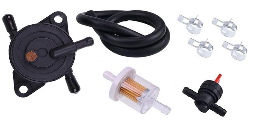Replaces OE Part Number:49040-7008, 49040-0770, MIU12470. Compatible with Kawasaki: FX541V, FX600V, FX651V, FX691V, FX730V, FR541V, FR600V, FR651V, FR691V, FR730V, FS481V, FS541V, FS600V, FS651V, FS691V, FS730V engines. Compatible with John Deere: WG32A, WG36A, WG48A, WH36A, WHP36A, WH48A, WHP48A, WH52A, WHP52A, WH61A, and WHP61A walk-behind mowers; 647A, 657A, 667A, 652B, 636M, 648M, 652M, 648R, 652R, and 661R QuikTrak mowers; and Z445, Z465, Z645, Z655, and Z665 lawn mowers.. Package Includes: 1 fuel pump, 1 fuel filter, 4 clamps, 1 fuel hose, 1 shut-off valve.Other fine products
