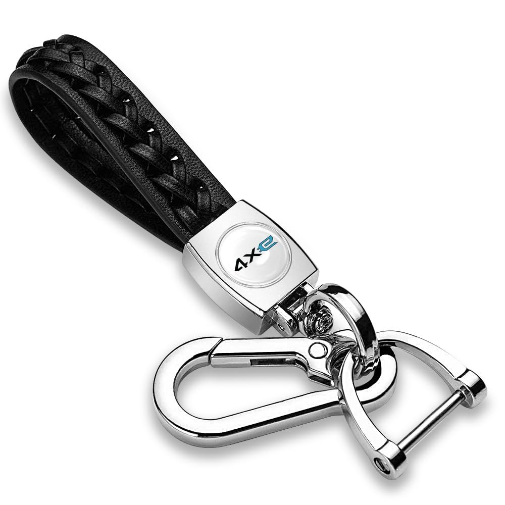 - Jeep 4xe In White Braided Rope Style Genuine Black Leather Key Chain Official Licensed