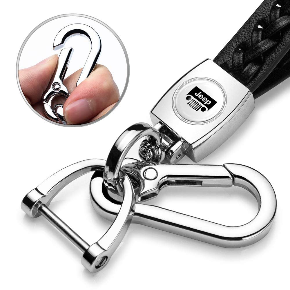 - Jeep Grill In White Braided Rope Style Genuine Leather Chrome Hook Key Chain