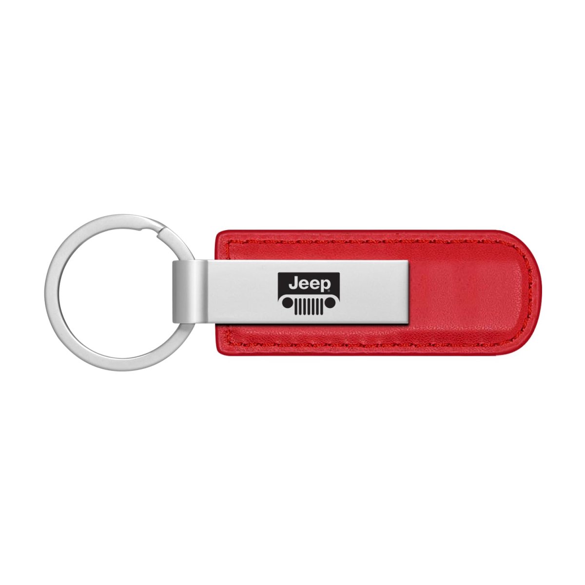- Jeep Grill Red Pu Leather Strap Silver Metal Bar Key Chain Official Licensed